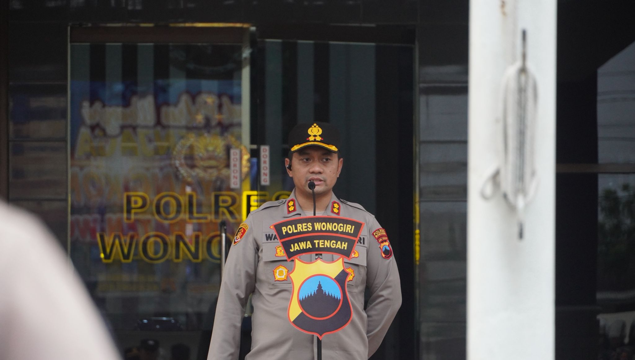 Apel dipimpin langsung oleh Kapolres Wonogiri AKBP Wahyu Sulistyo, S.H., S.I.K., M.P.M., dan diikuti oleh seluruh jajaran personel Polres Wonogiri.