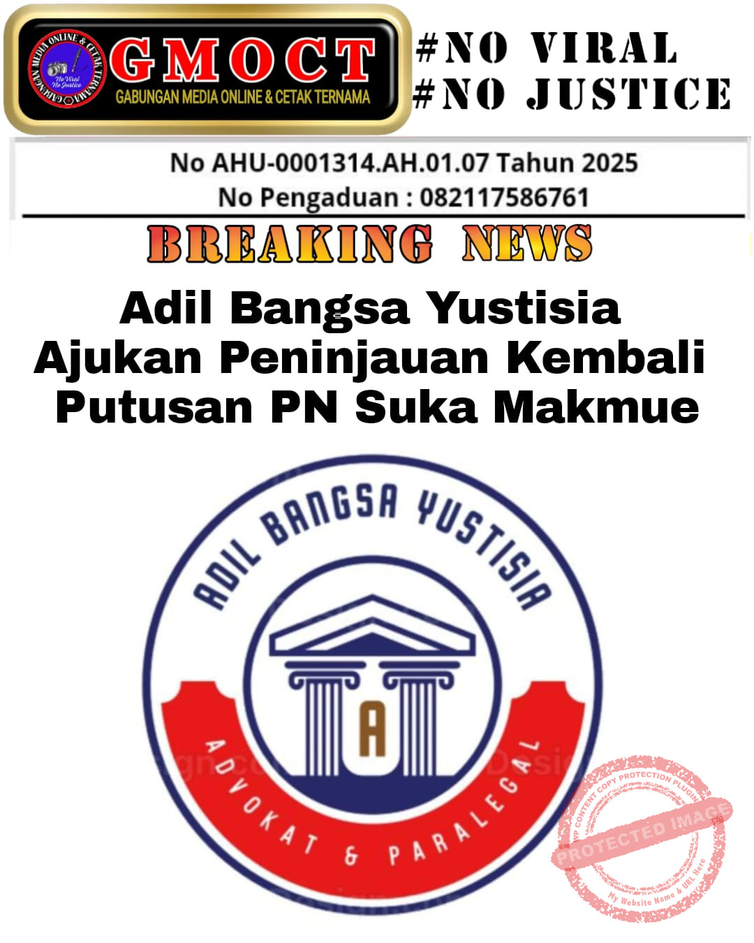 Adil Bangsa Yustisia Ajukan Peninjauan Kembali Putusan PN Suka Makmue