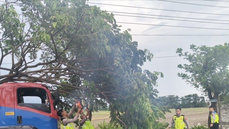 Pati – Polresta Pati kembali menunjukkan respon cepat dalam penanganan kedaruratan di wilayah hukum Pati. Sebuah pohon trembesi berdiameter 80 centimeter tumbang dan melintang di Jalan Lingkar Selatan Ngantru pada Sabtu siang (6/12/2025) sekitar pukul 13.00 WIB, yang berpotensi menimbulkan kemacetan hingga kecelakaan lalu lintas. Laporan warga yang masuk melalui Call Center 110 langsung ditindaklanjuti oleh PAMAPTA dan personil Polresta Pati tanpa menunggu waktu.