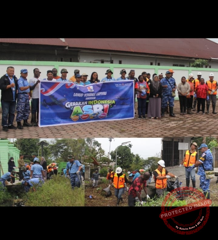 Mimika_Tindakan aksi nyata dalam menyukseskan Gerakan Nasional Indonesia ASRI (Aman, Sehat, Resik, dan Indah), personel Lanud Yohanis Kapiyau Timika mengikuti kegiatan Jumat Bersih di Kampung Nawaripi, Mimika, Papua Tengah. Jum’at (27/2/2026).