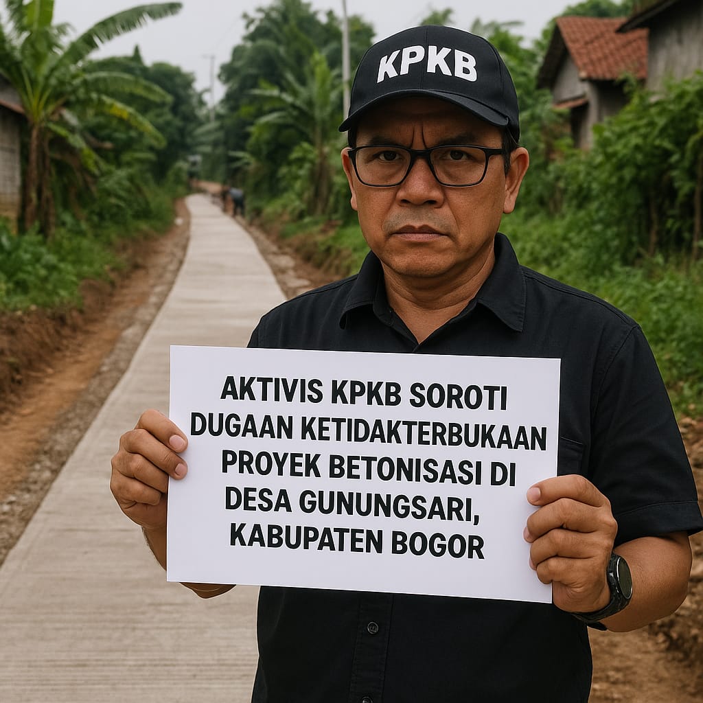 Bogor – Aktivis dari Kumpulan Pemantau Korupsi Bersatu (KPKB) menyoroti proyek betonisasi jalan di RT 03 RW 05, Desa Gunungsari, Kecamatan Citeureup, Kabupaten Bogor, yang diduga tidak transparan dalam pelaksanaannya. Sorotan ini mencuat setelah kunjungan sejumlah jurnalis dan pemerhati anggaran publik pada Senin (2/6/2025) ke lokasi proyek.