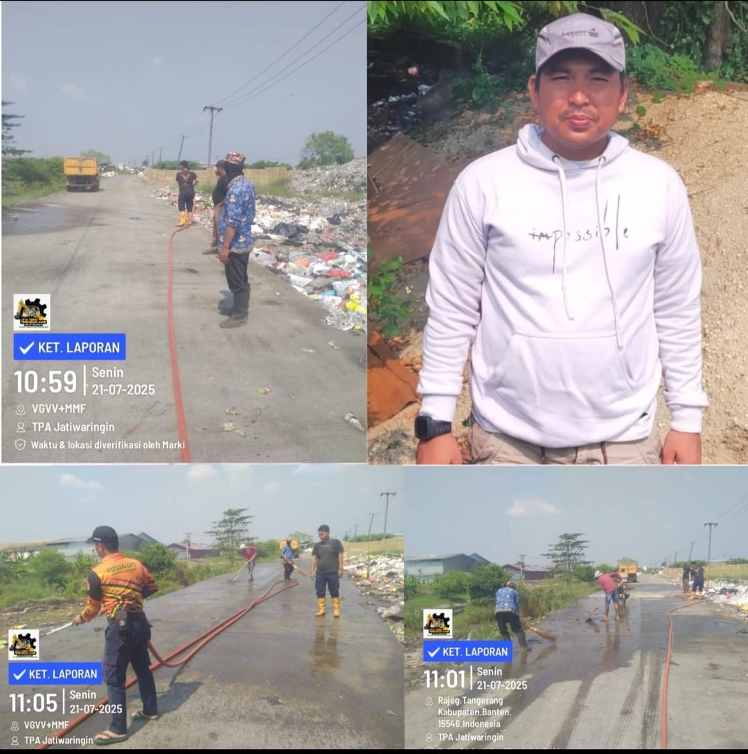 ,”Kebersihan area TPA Jatiwaringin khususnya jalan poros merupakan tanggung jawab kami,agar masyarakat nyaman berkendara melewati area TPA Jatiwaringin dan sudah berkomitmen jalan poros harus bersih, rapih dan tidak berdebu .”ujar Dude Sadwaludin Kabag TPA Jatiwaringin,Mauk Tangerang.