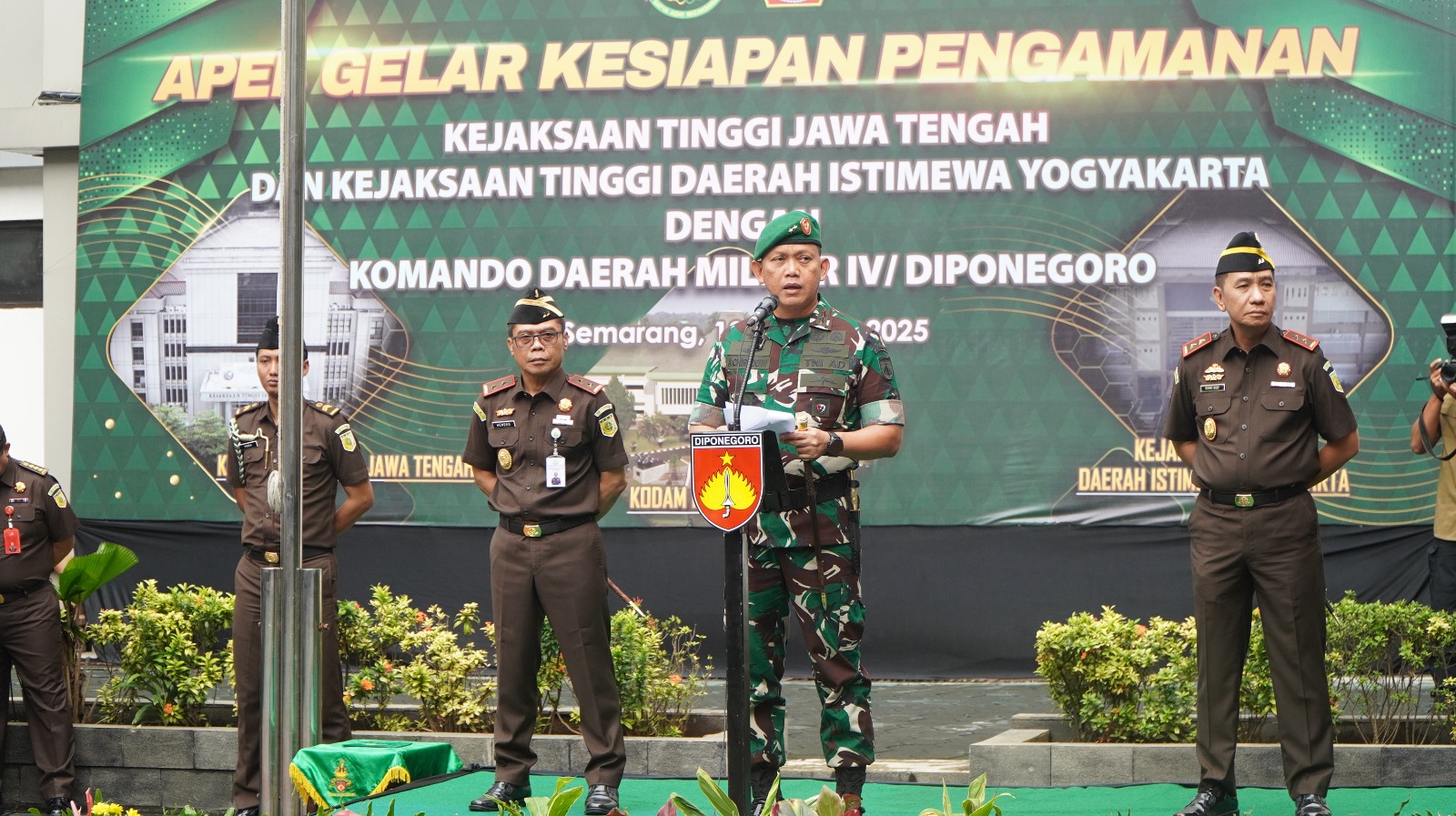 Pangdam IV/Diponegoro, Mayjen TNI Achiruddin Darojat, menegaskan TNI siap mengamankan seluruh kantor Kejati dan Kejari di wilayah Jateng dan DIY. Pengamanan ini, katanya, merupakan tindak lanjut nyata dari nota kesepahaman (MoU) antara TNI dan Kejaksaan, sekaligus sesuai dengan Surat Telegram Panglima TNI No. TR/422/2025 dan Telegram KSAD No. ST/1192/2025.