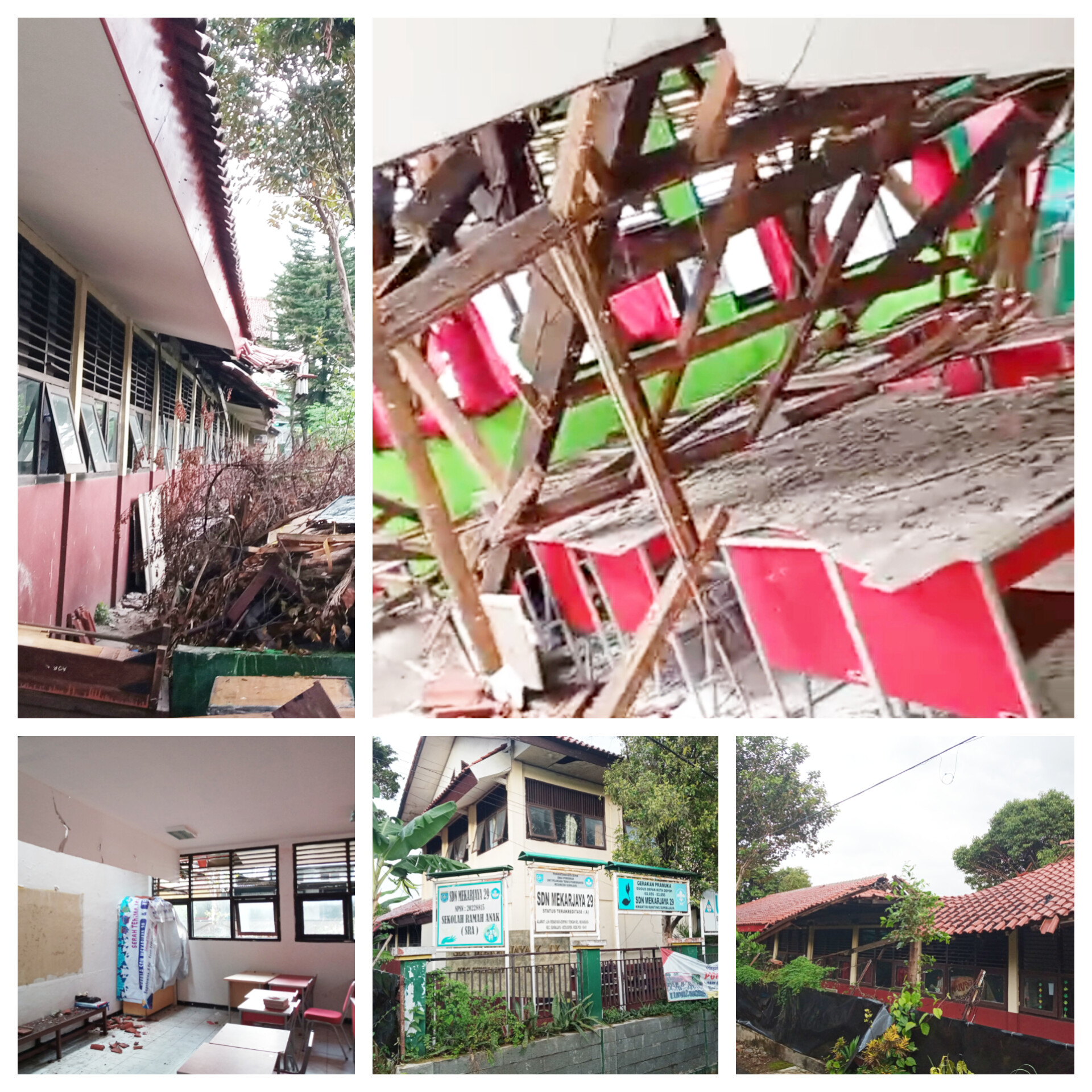 Depok | Harianesia – Atap gedung SDN Mekarjaya 29 yang terletak di Kelurahan Mekarjaya, Kecamatan Sukmajaya, Kota Depok, ambruk pada Sabtu (11/1/2025),) sekitar pukul 22.30 WIB. Kepala sekolah SDN Mekarjaya 29, Rika Kartika, belum terkonfirmasi saat ini dikarenakan saat awak media datang aktivitas sudah tidak ada.