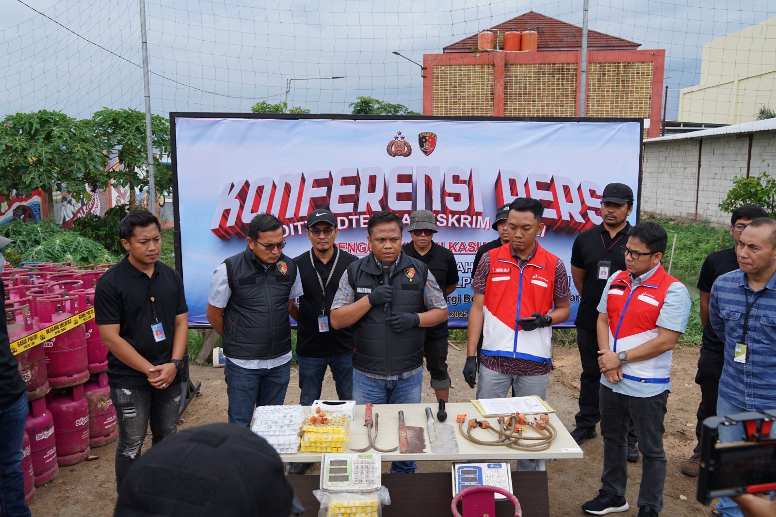 “Kami menindaklanjuti laporan masyarakat mengenai kegiatan mencurigakan yang diduga sebagai penyuntikan gas, yang berpotensi mengakibatkan kelangkaan LPG 3 kg bersubsidi di wilayah tersebut,” jelas Brigjen Pol. Moh. Irhamni.