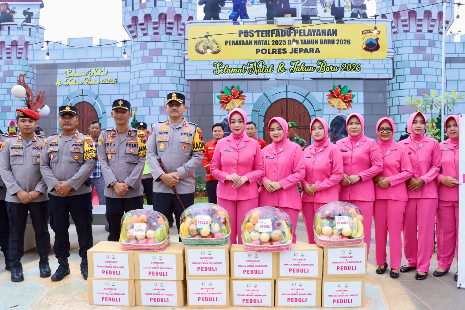 Sementara itu, Ketua Bhayangkari Cabang Jepara Ny. Dessy Erick Budi Santoso turut menyerahkan bingkisan makanan dan buah kepada personel yang bertugas.