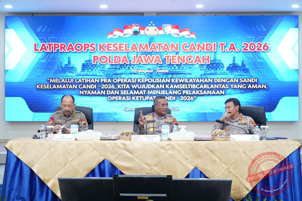 Polda Jateng-Kota Semarang – Sebagai bentuk kesiapan menjelang pelaksanaan Operasi Keselamatan Candi 2026, Polda Jawa Tengah menggelar Latihan Pra Operasi (Latpraops) yang diikuti oleh para Kabag Ops, Kasat Lantas, Kasat Intel, dan Kasi Humas dari 35 Polres jajaran. Kegiatan tersebut dilaksanakan pada Rabu, 28 Januari 2026, mulai pukul 08.00 WIB bertempat di Gedung Borobudur Mapolda Jateng.