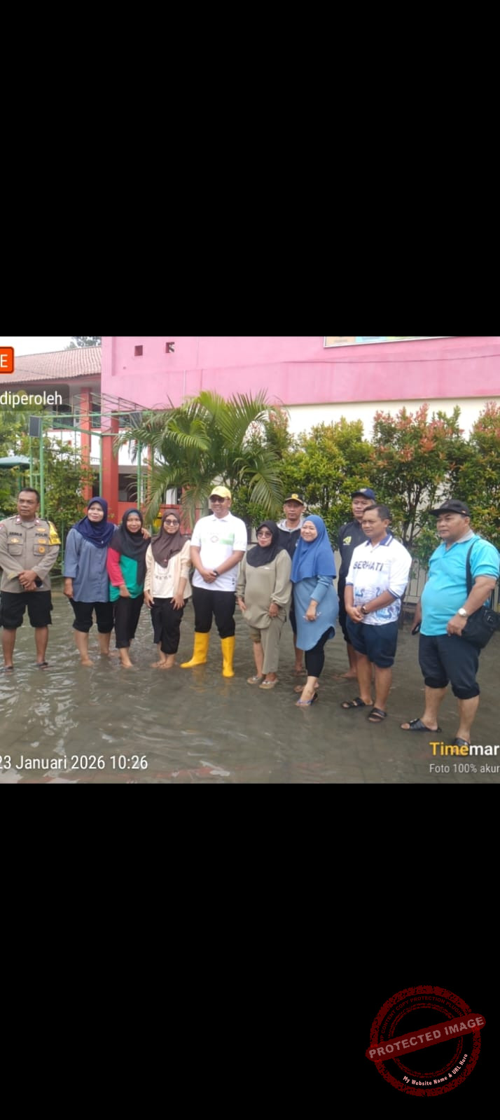 Saat rombongan Camat tiba di lokasi, Kepala Sekolah (Kepsek) tidak terlihat berada di sekolah. Di lokasi hanya tampak beberapa guru yang berada di ruang guru. Salah satu guru menyampaikan bahwa kunjungan tersebut bertujuan untuk memastikan ketinggian air yang menggenangi area sekolah.