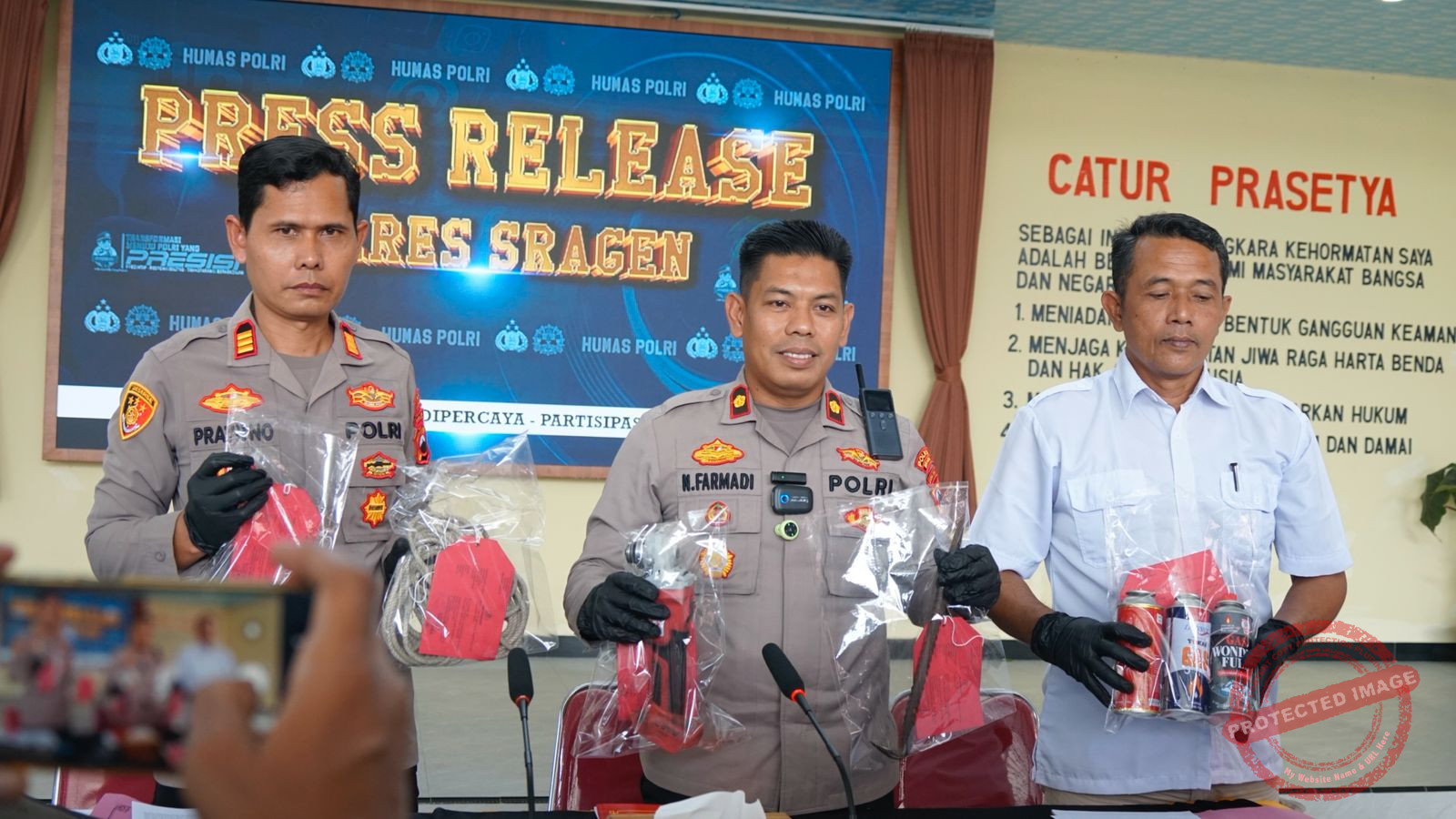 Dalam konferensi pers tersebut, Wakapolres Sragen didampingi KBO Satreskrim Polres Sragen Iptu Warsito serta Kapolsek Miri yang memaparkan secara rinci penanganan perkara dan perkembangan penyidikan.