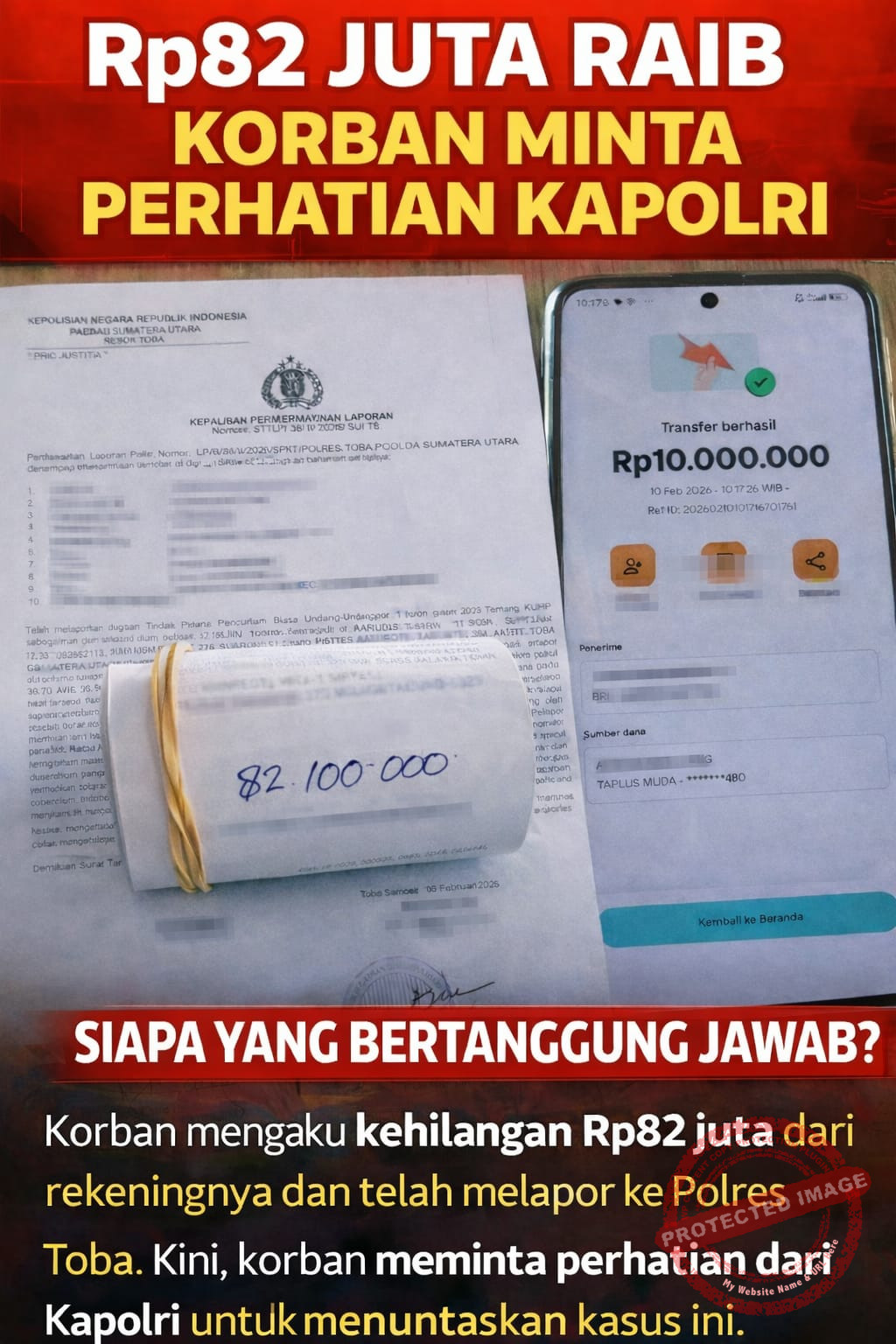 Kasus tersebut telah dilaporkan secara resmi ke pihak kepolisian melalui Laporan Polisi Nomor: LP/B/38/II/2026 di Polres Toba.