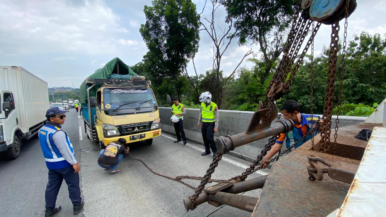 Mengetahui situasi tersebut, Tim Urai yang dipimpin oleh Kasat PJR Ditlantas Polda Jateng AKBP Endi Pratama, S.I.K., M.M., bersama Ka Team Urai Ditlantas Polda Jateng Kompol Setiaji Nor Atmojo, S.I.K., M.A., langsung turun tangan membantu penanganan di lokasi. Petugas segera melakukan pengamanan dan pengaturan arus lalu lintas, sekaligus mendatangkan kendaraan derek untuk mengevakuasi truk yang mogok agar tidak menghambat arus kendaraan lainnya.