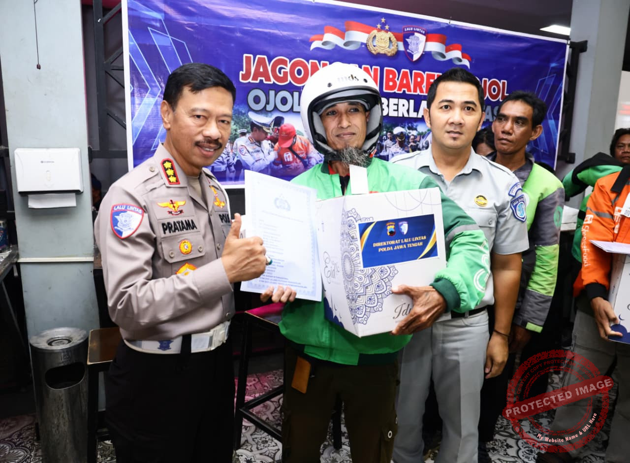 Sebagai bentuk kepedulian, pada akhir kegiatan Dirlantas Polda Jateng menyerahkan bingkisan berupa helm berstandar SNI dan paket sembako kepada seluruh peserta.