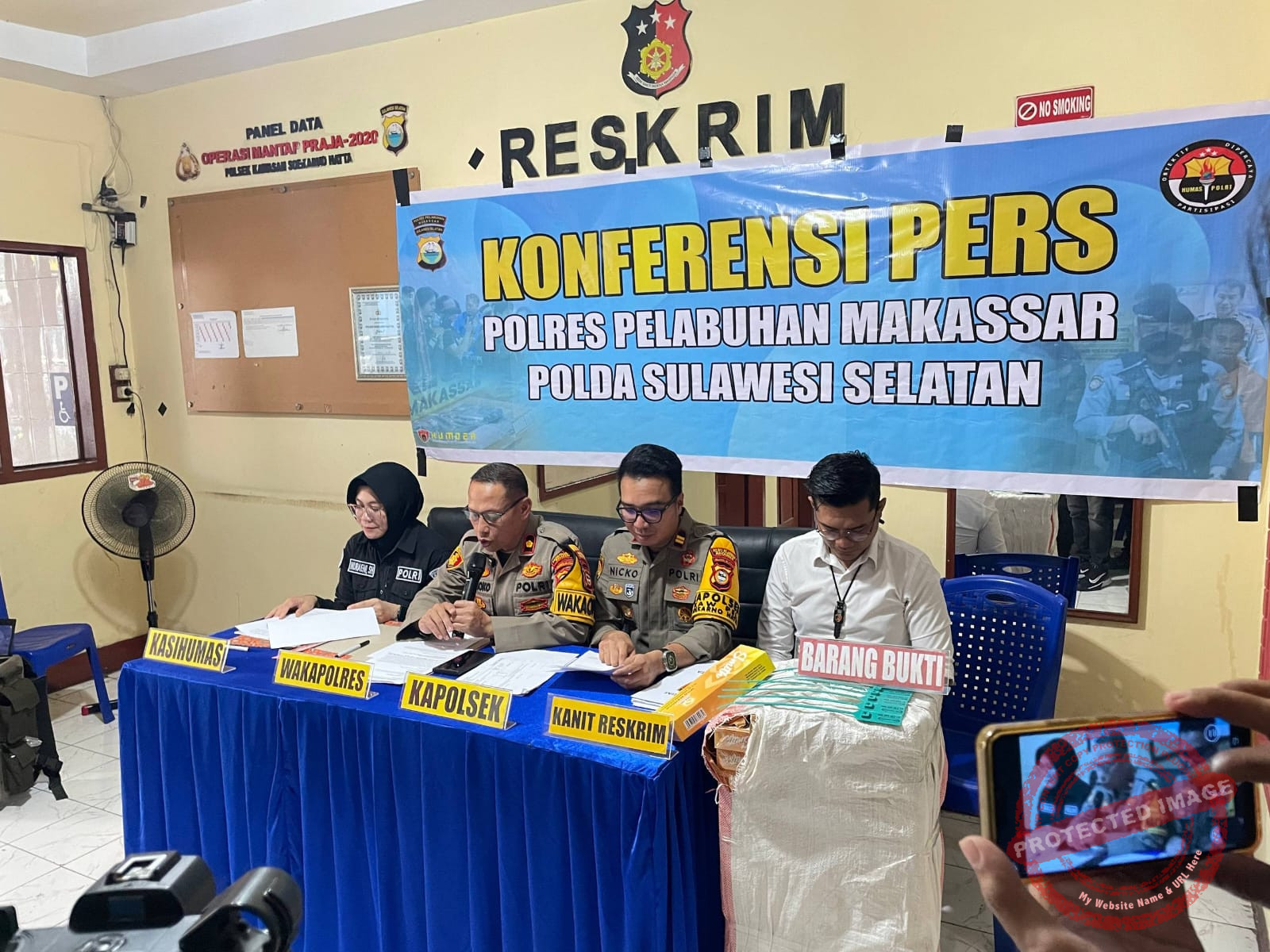 Temuan tersebut kemudian diungkap dalam konferensi pers yang digelar di Mapolsek Kawasan Soekarno Hatta, yang dipimpin Wakapolres Pelabuhan Makassar Kompol Hardjoko, didampingi Kapolsek Soeta IPTU Nicolas.