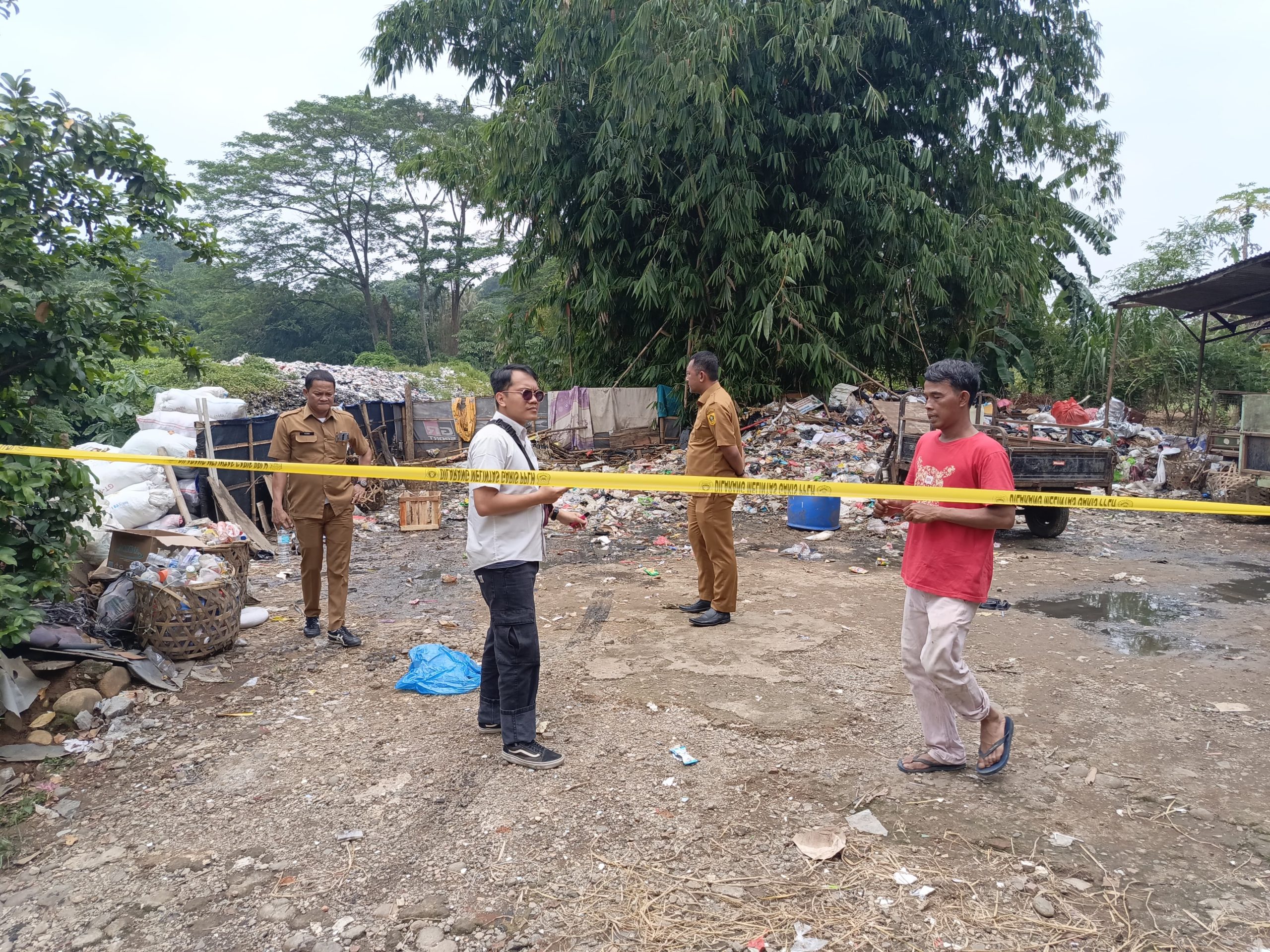 Kepala Bidang (Kabid) Pengelolaan Persampahan DLH Kabupaten Bogor, Agus Budi, memimpin langsung penertiban dan memasang garis line di area TPS liar sebagai tanda penghentian seluruh aktivitas pengelolaan sampah tanpa izin.