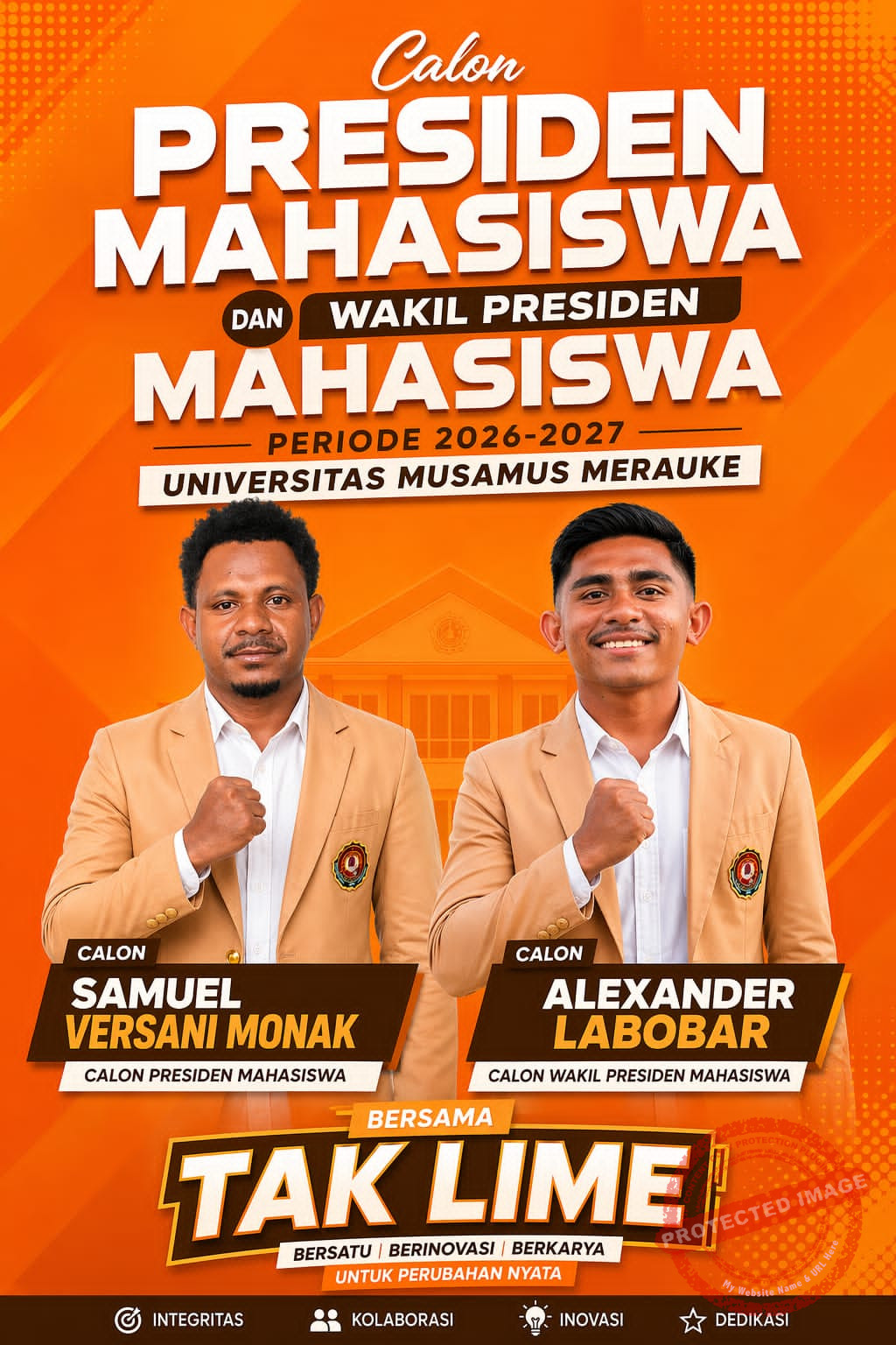 Pasangan tersebut adalah Samuel Versani Monak sebagai bakal calon Presiden Mahasiswa dan Alexander Labobar sebagai bakal calon Wakil Presiden Mahasiswa. Deklarasi ditandai dengan peluncuran poster kampanye bertajuk “Bersama Kami” yang mengedepankan semangat persatuan, inovasi, dan kerja nyata.