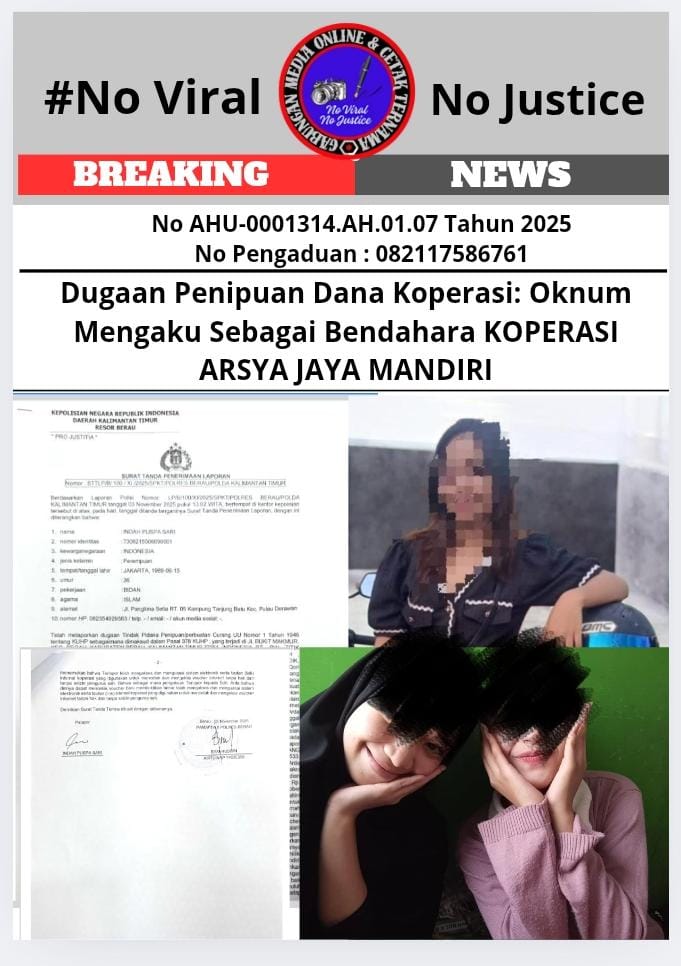 Tanjung Batu, Kalimantan Timur – Dugaan penipuan dana koperasi terjadi di daerah ini, yang dilakukan oleh seseorang yang mengaku sebagai bendahara Koperasi Arsya Jaya Mandiri, Selasa (09/12/2025). Informasi ini diperoleh GMOCT (Gabungan Media Online dan Cetak Ternama) dari media online Eksposelensa yang tergabung didalamnya.