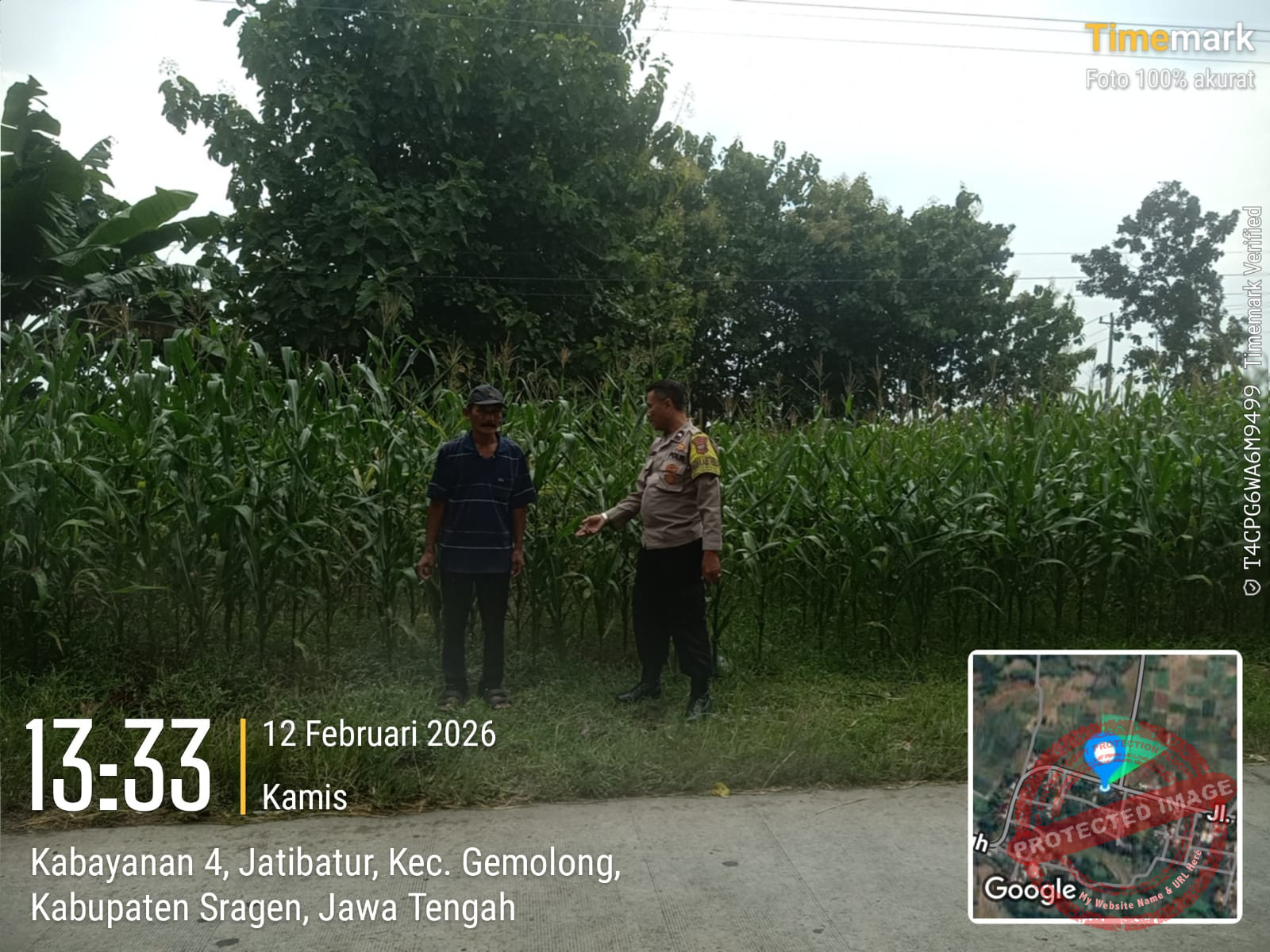 Kamis (12/2/2026), aparat kepolisian melaksanakan pengecekan tanaman jagung jenis hibrida PIONEER di lahan baku sawah (LBS) milik warga Dukuh Kukungerit, Desa Jatibatur.