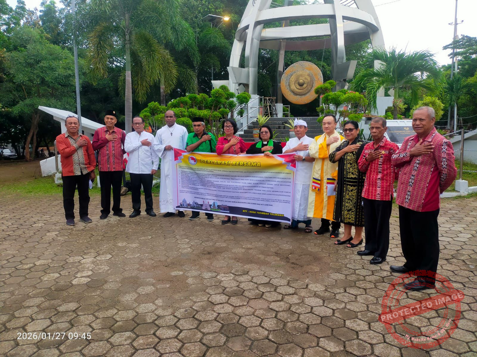 Dalam deklarasi yang dihadiri semua tokoh agama dan dipimpin langsung Ketua Forum Kerukunan Umat Beragama (FKUB) Provinsi NTT, Prof. Dr. Yuliana Salosso, S.Pi., MP berlangsung di Taman Nostalgia, Kota Kupang, Selasa (27/1).