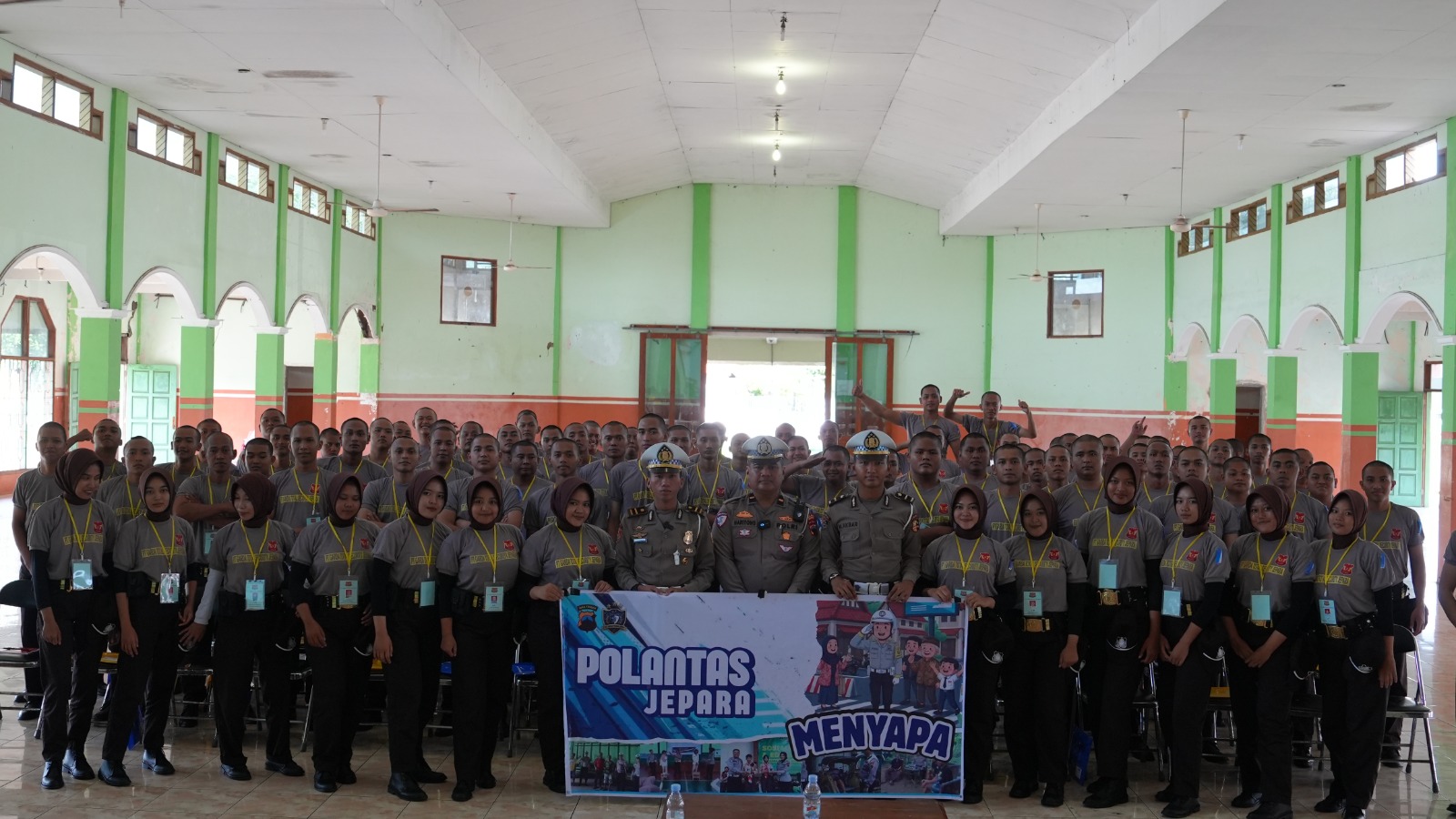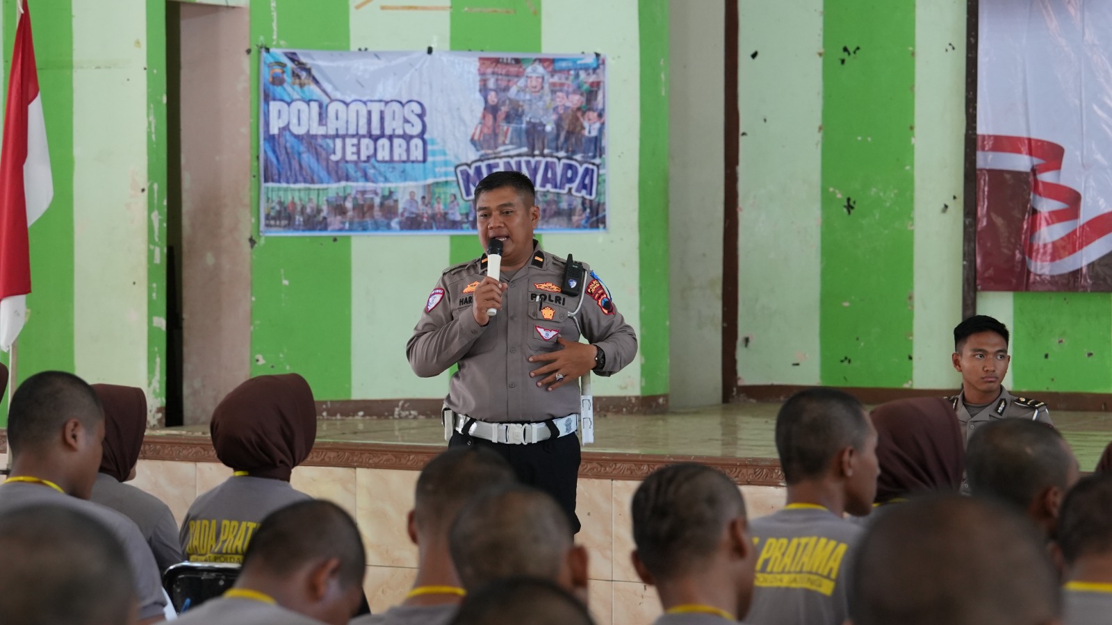 Jepara_HARIANESIA.COM_Polres Jepara | Satlantas Polres Jepara, Polda Jawa Tengah, hadir di tengah-tengah peserta Latihan dasar Garda Pratama Total Security Jepara untuk memberi edukasi terkait keselamatan berkendara yang digelar di Gedung Haji Jepara, pada Selasa (25/11/2025).