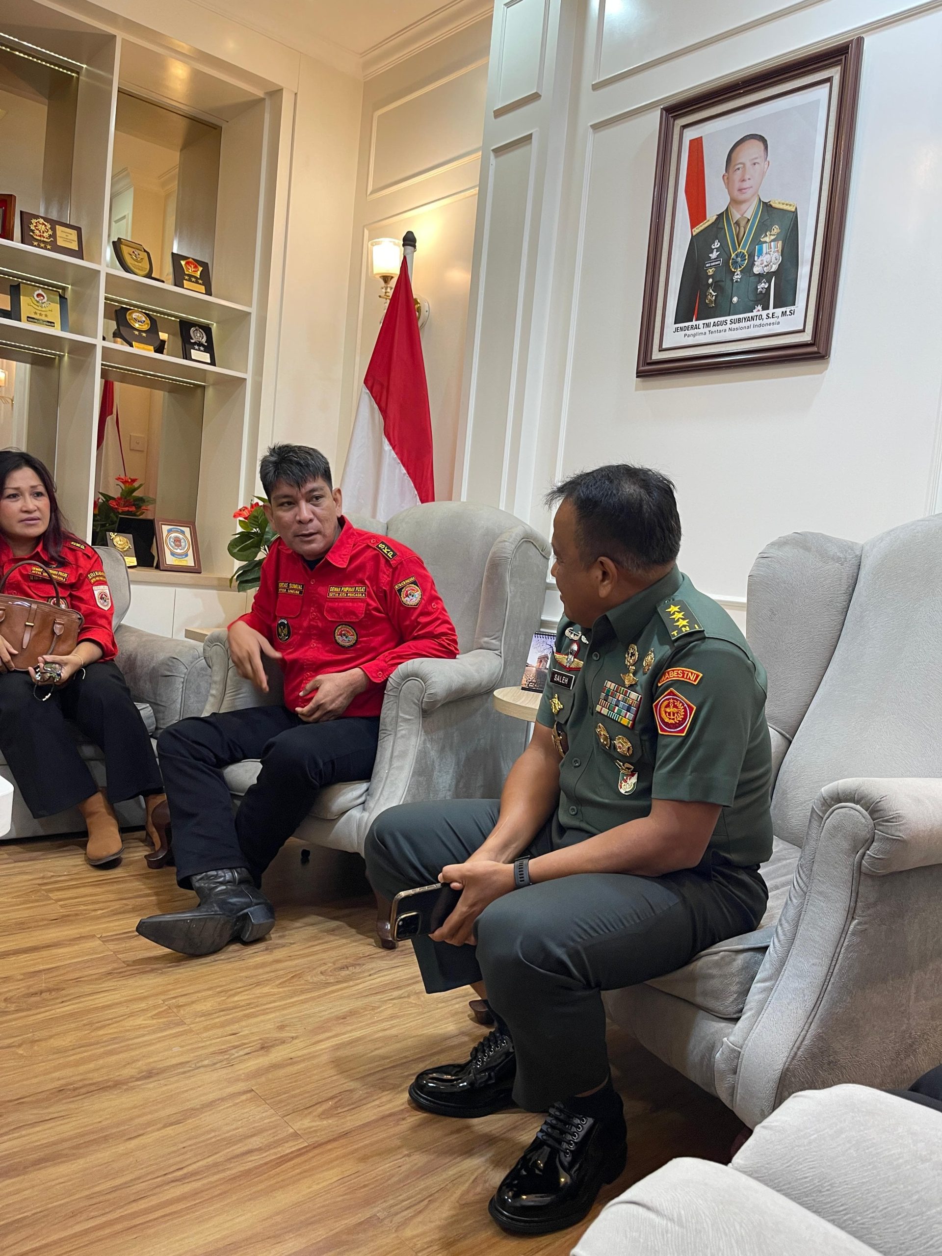 Pertemuan berlangsung dalam suasana hangat dan penuh keakraban, diselingi senyuman ramah dari Sang Jenderal.