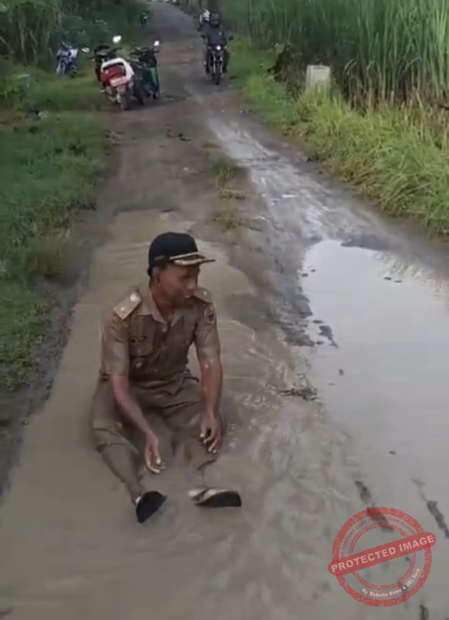 Dalam video tersebut, Narso tampak memperlihatkan kondisi jalan yang berubah menjadi kubangan lumpur dan membahayakan pengguna jalan.