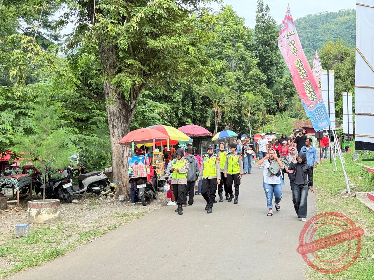 Selain melakukan penjagaan dan patroli, personel di lapangan juga melaksanakan pengaturan arus lalu lintas di jalur menuju dan dari lokasi wisata untuk mengantisipasi kemacetan serta potensi kecelakaan lalu lintas.