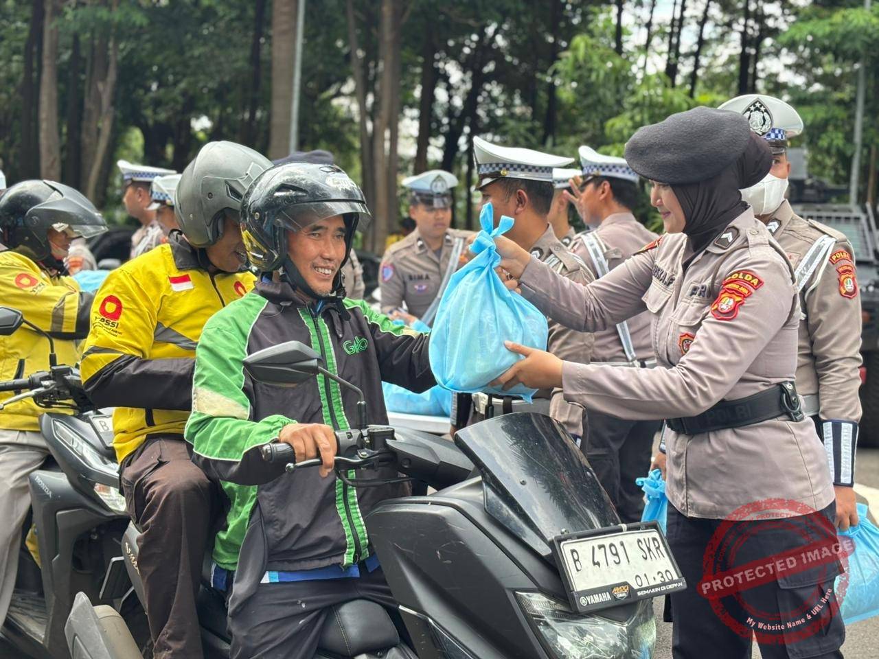 Selain pembagian sembako, kegiatan ini turut diisi dengan penyampaian imbauan keselamatan berkendara oleh personel Polwan. Para pengemudi Ojol diajak untuk selalu disiplin menaati aturan lalu lintas serta mengutamakan keselamatan diri dan penumpang.