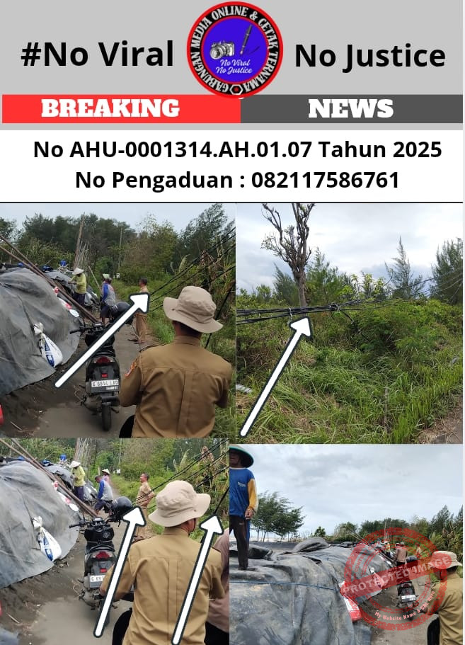 Pemalang, GMOCT – Informasi ini diperoleh oleh GMOCT (Gabungan Media Online dan Cetak Ternama) dari media online Kabarsbi yang merupakan anggota aktifnya. Pada Senin (23/2/2026) pukul 13.30 WIB, Kepala Desa Nyamplungsari, Abdul Wahid, bersama jajaran perangkat desa, Ketua RT 06 RW 01, dan Ketua Karang Taruna, turun langsung ke lokasi tambak udang vaname milik Julius. Tindakan tegas ini diambil setelah keresahan warga mencapai titik puncak akibat kondisi kabel instalasi tambak yang dibiarkan berserakan dan melintasi jalur akses publik tanpa sedikit pun pengamanan yang memenuhi standar.