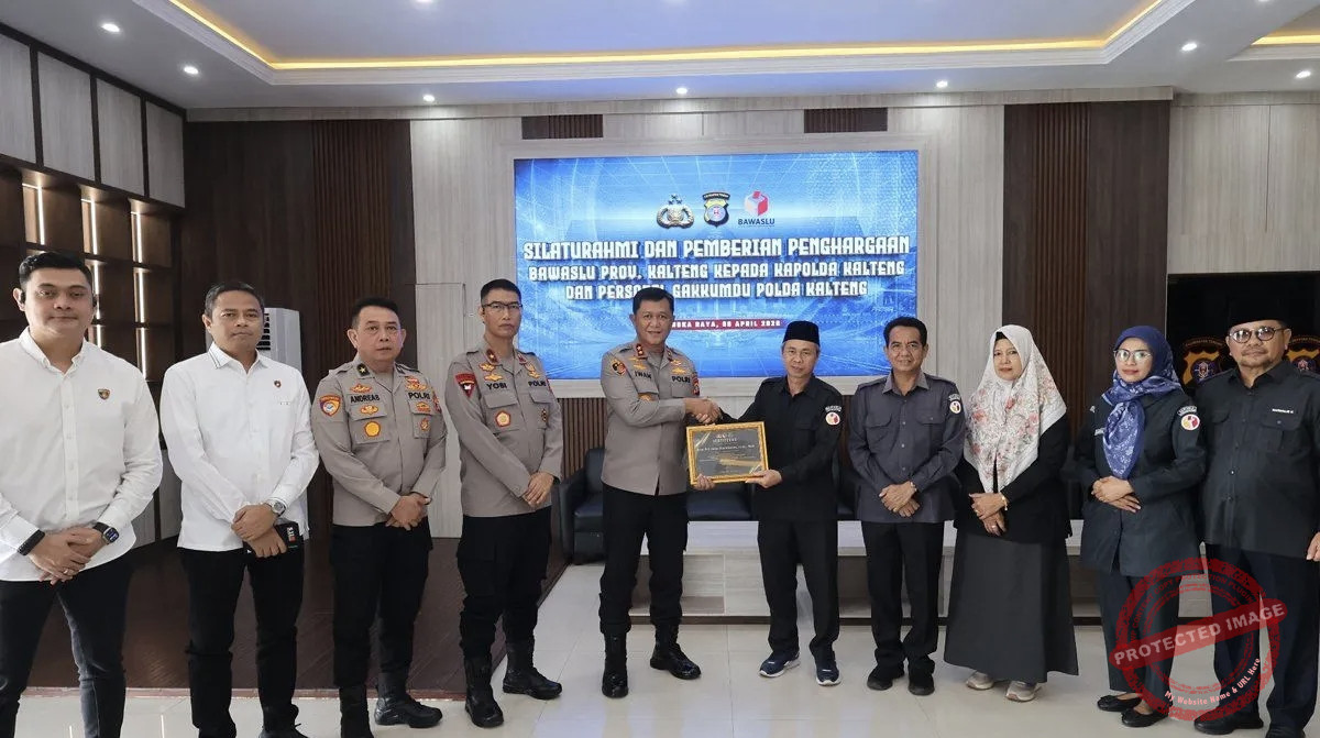Penyerahan penghargaan dilakukan oleh Ketua Bawaslu RI melalui Ketua Bawaslu Kalteng, Satriadi dalam kegiatan silaturahmi di Mapolda Kalteng.