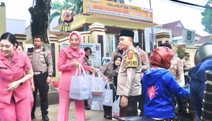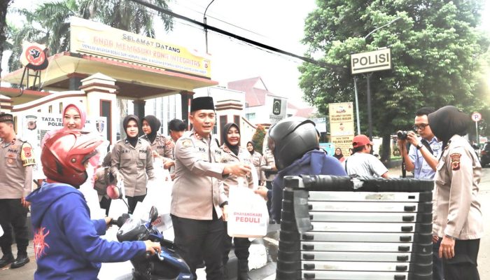 Kapolres Bogor Bersama Ketua Bhayangkari Cabang Polres Bogor Dan Jajaran, Berbagi Takjil Wujud Kepedulian Kepada Warga Masyarakat Yang Akan Berbuka Puasa Dibulan Ramadhan 1446 H