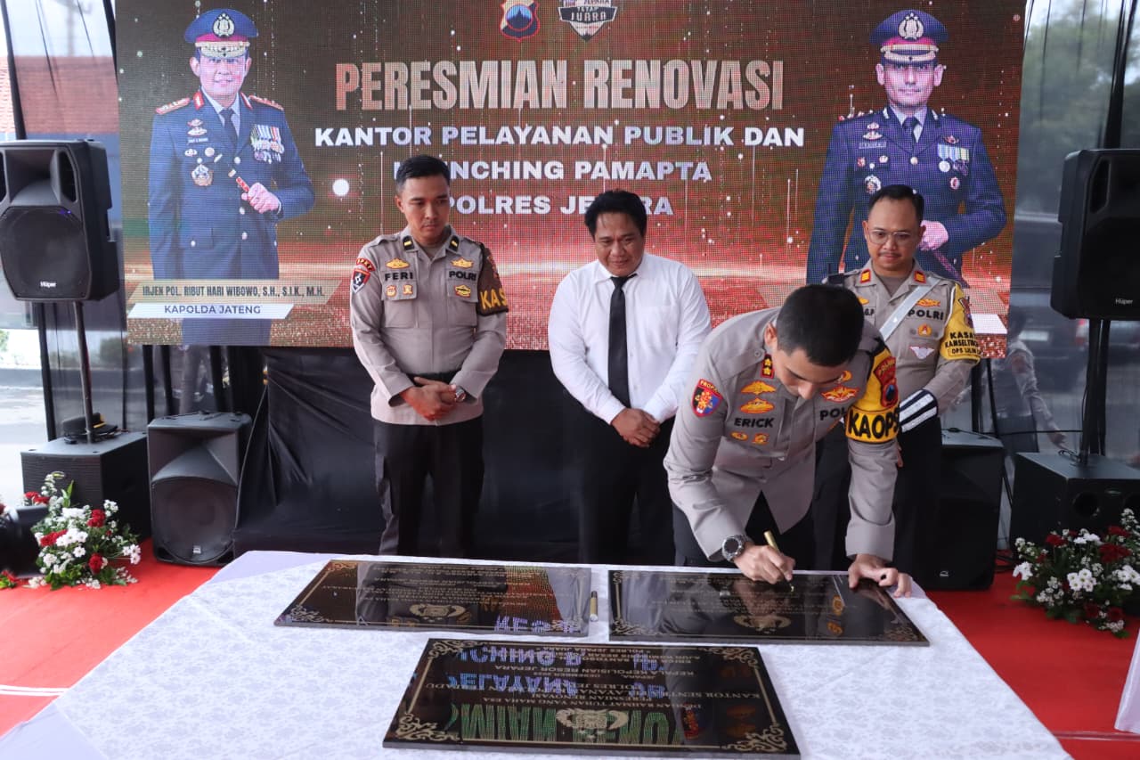 Jepara – Polres Jepara | Kepala Kepolisian Resor (Kapolres) Jepara AKBP Erick Budi Santoso meresmikan renovasi kantor pelayanan publik dan lauching Pamapta Polres Jepara usai pelaksanaan apel gelar pasukan Ops Lilin Candi 2025 di Mapolres Jepara, pada Jumat (19/12/2025) lalu.