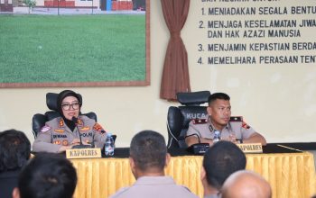 Purworejo – Kapolres Purworejo AKBP Andry Agustiano, S.I.K., M.Si. memberikan pernyataan resmi melalui kegiatan doorstop usai memimpin Upacara Ziarah Rombongan dan Tabur Bunga dalam rangka Hari Bhayangkara ke-79 di Taman Makam Pahlawan Projo Handokoloyo Purworejo, Senin (23/06) pagi.