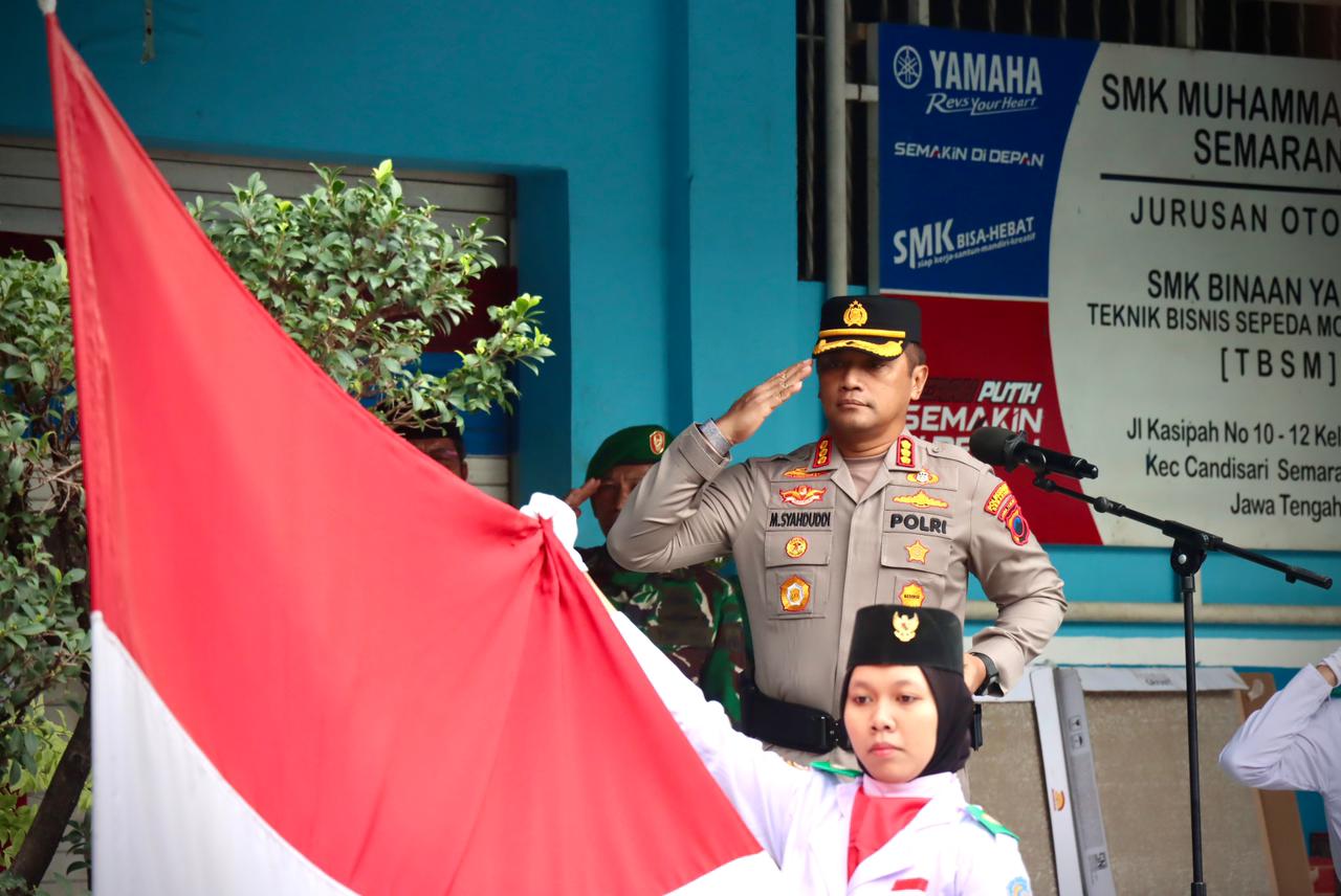 Acara diawali dengan upacara bendera di halaman sekolah, di mana Kapolrestabes bertindak sebagai pembina upacara. Dalam kesempatan itu, ia menyampaikan rasa terima kasih atas undangan dan kesempatan untuk dapat berdialog serta memberikan arahan langsung kepada siswa dan dewan guru. Upacara turut dihadiri Kasat Binmas Polrestabes Semarang AKBP Hery Tristiyono, S.H., Kapolsek Candisari Iptu Rudi Amzah, Wadanramil Banyumanik–Candisari Kapten Ctp Agus Saleh, Camat Candisari Cipta Nugraha, Ketua PCM Candisari 1 DR. Drs. H. Samsudi Rahardjo, ST., MM., MT., Kepala SMK Muhammadiyah 2 Semarang Ibu Asti Hanani, serta para guru lainnya.