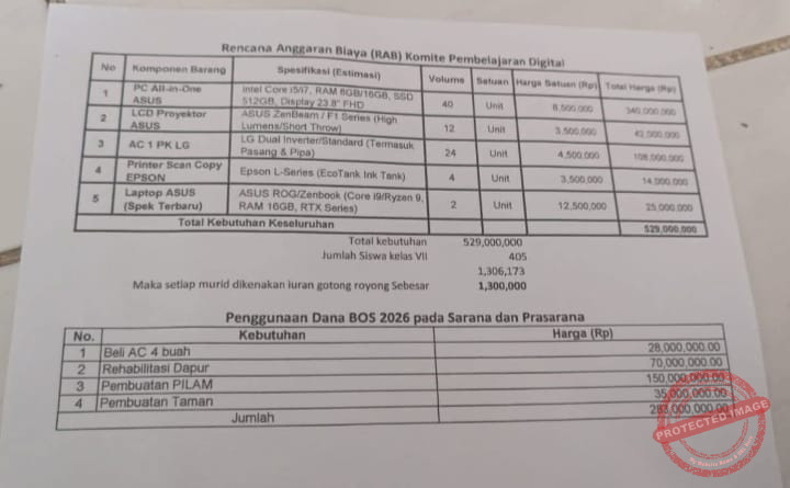 Pungutan uang pengadaan barang tersebut viral setelah diposting akun Facebook @Sunirita Cintatya 2 hari lalu. Akun ini mengunggah curhatan dan keluhan disertai foto rencana anggaran belanja (RAB) Komite Pembelajaran Digital.
