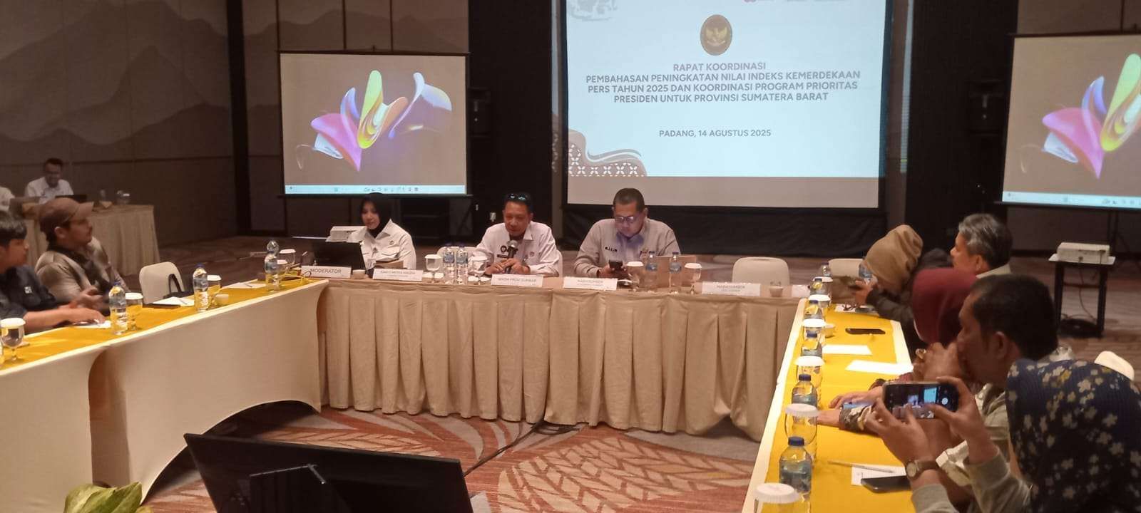 Padang – Kementerian Koordinator Bidang Politik dan Keamanan (Kemenko Polkam) melalui Kedeputian Bidang Koordinasi Komunikasi dan Informasi menggelar Rapat Pembahasan Peningkatan Nilai Indeks Kemerdekaan Pers (IKP) Tahun 2025 dan Koordinasi Program Prioritas Presiden di Provinsi Sumatera Barat.