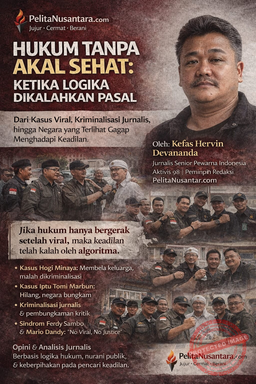 Penulis adalah Jurnalis Senior Pewarna Indonesia, Aktivis Reformasi 1998, dan Pemimpin Redaksi PelitaNusantara.com. Aktif mengawal isu penegakan hukum, kebebasan pers, dan perlindungan warga negara dari kriminalisasi, dengan perspektif kritis, humanis, dan berpihak pada pencari keadilan.