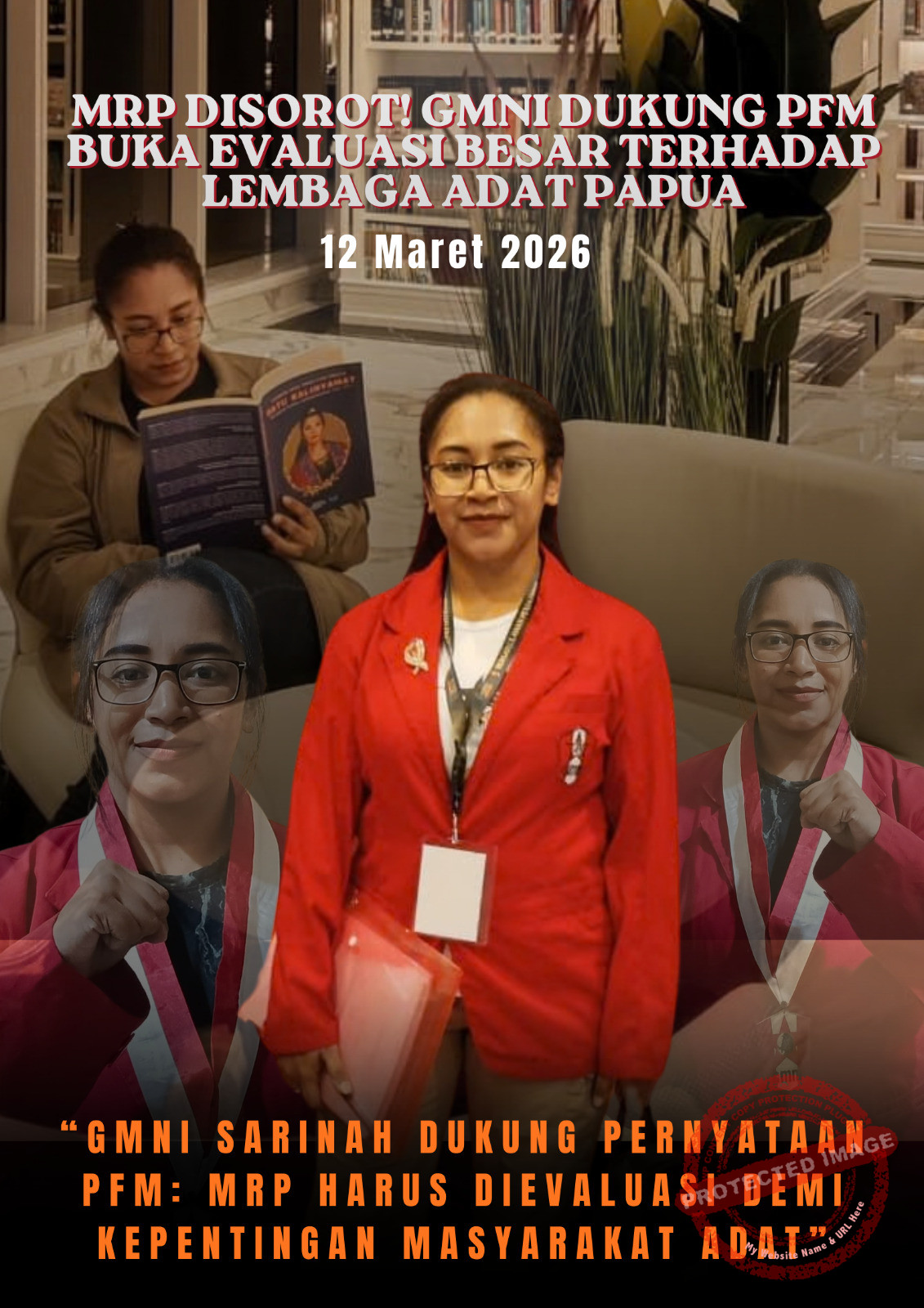 JAKARTA, 12 MARET 2026 – Ketua DPP Gabungan Mahasiswa Nasional Indonesia (GMNI) Bidang Pergerakan Sarinah (Perempuan) menyatakan dukungan penuh terhadap pernyataan Anggota DPD RI asal Papua Barat Daya, Paul Finsen Mayor (PFM), yang sebelumnya menyebut agar Majelis Rakyat Papua (MRP) dibubarkan.