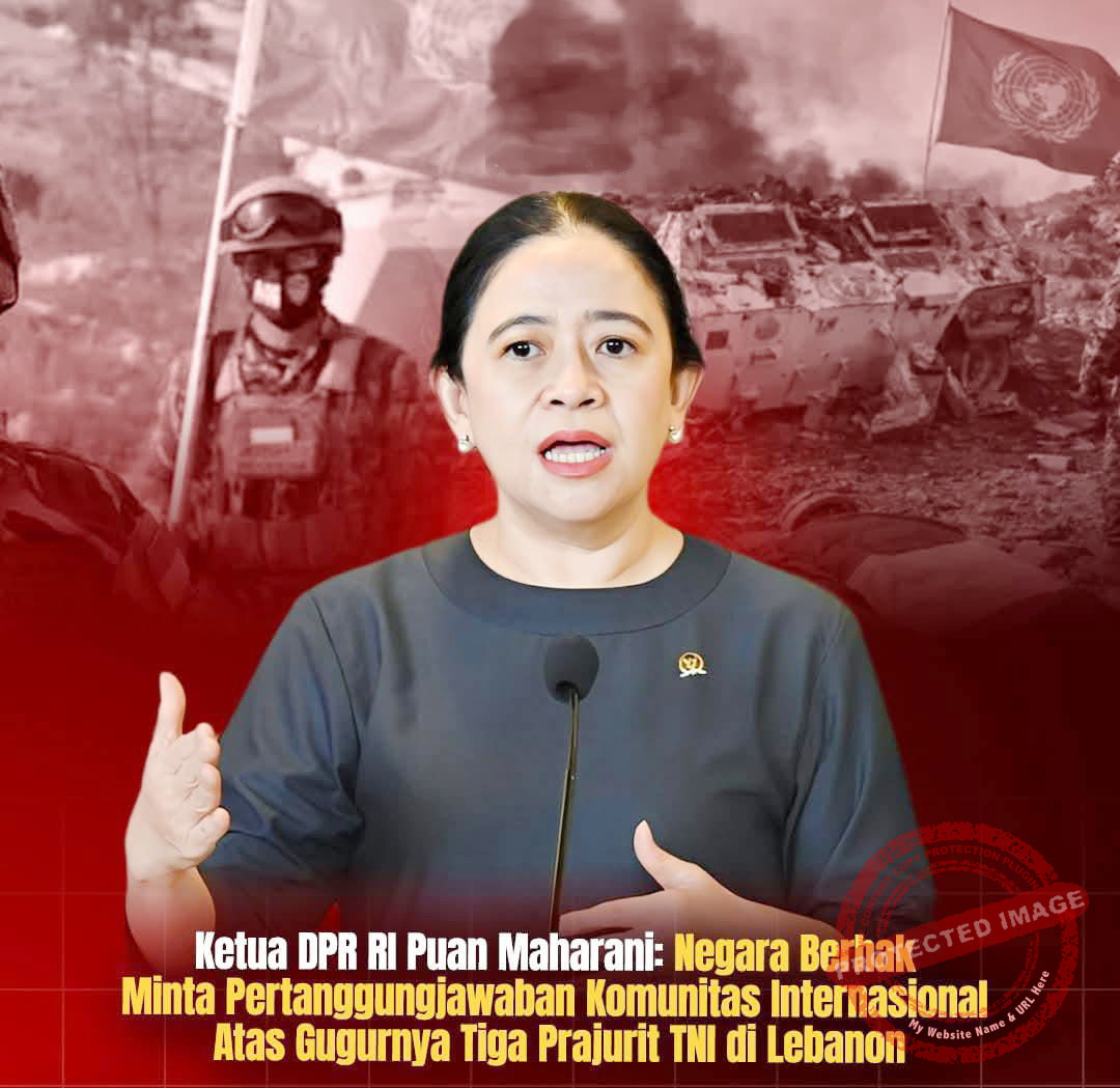 “Atas nama DPR RI maupun pribadi, saya sampaikan duka cita mendalam atas gugurnya tiga anak bangsa yang sedang menjalankan tugas kemanusiaan di Lebanon,” kata Puan Maharani.