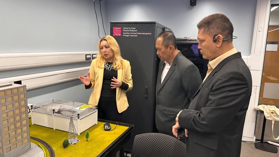Kunjungan ini diterima oleh jajaran pimpinan akademik Cardiff University, termasuk Director ACE-CSE Dr. Yulia Cherdantseva, Head of School of Computer Science and Informatics Dr. Kathryn Jones, serta para peneliti dan pengampu program akademik bidang keamanan siber. Delegasi juga berkesempatan mengikuti simulasi pengamanan infrastruktur kritis nasional di Cyber Lab serta menerima pemaparan mendalam mengenai Cardiff Centre for Cyber Security Research (CCSR). CCSR merupakan salah satu pusat riset keamanan siber terkemuka di Inggris dan mitra strategis NCSC serta DSIT.