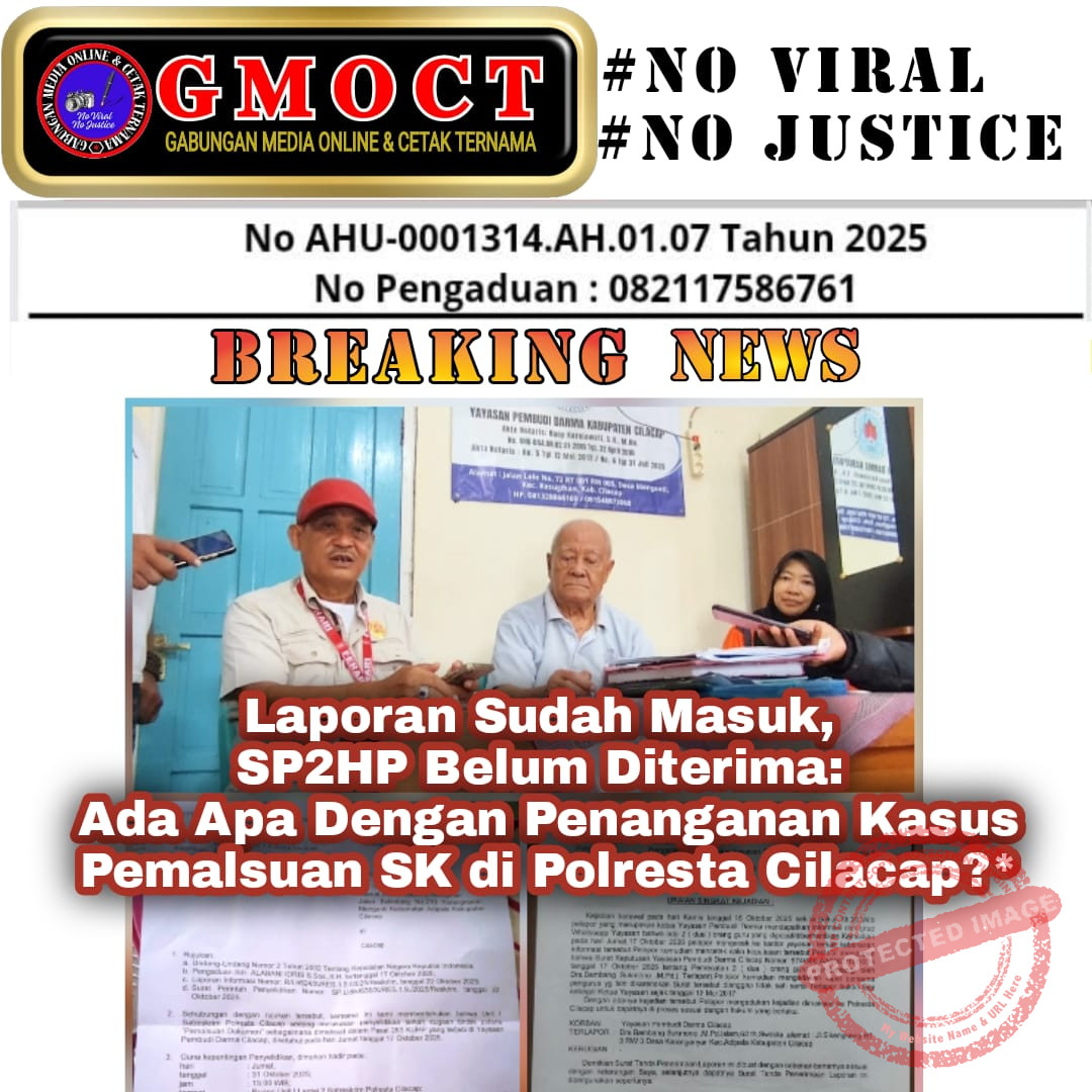 Cilacap, Penanganan dugaan pemalsuan Surat Keputusan (SK) pemberhentian dua guru di Yayasan Pembudi Darma Cilacap menjadi sorotan. Ketua Yayasan, Albani Idris, S.Sos., S.H., mempertanyakan perkembangan laporan yang telah ia ajukan ke Polresta Cilacap, menyusul belum diterimanya Surat Pemberitahuan Perkembangan Hasil Penyidikan (SP2HP) maupun salinan Laporan Polisi (LP).