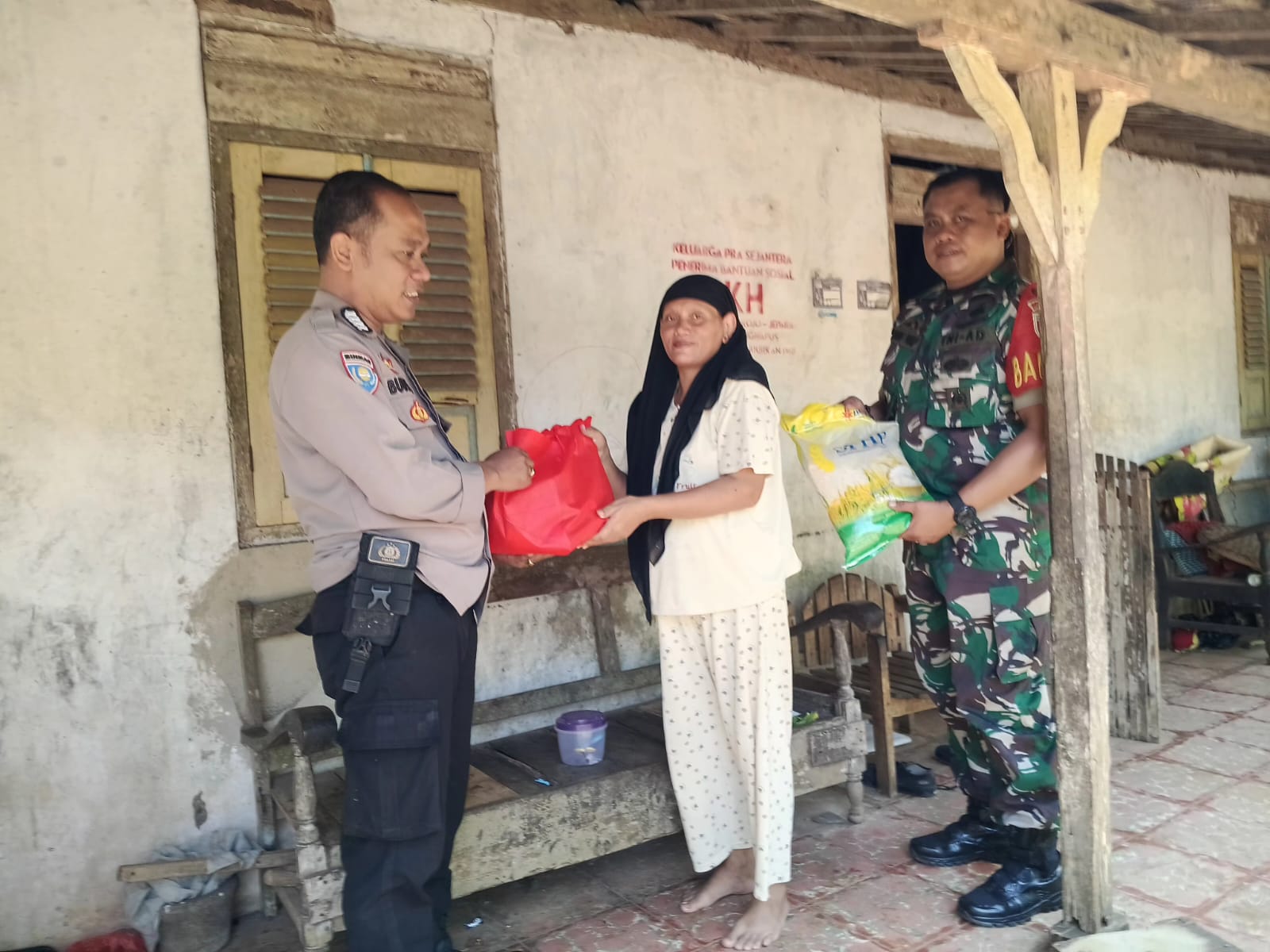 Bripka Budi tidak hanya menyerahkan bantuan sembako, tetapi juga menyampaikan pesan-pesan kamtibmas.