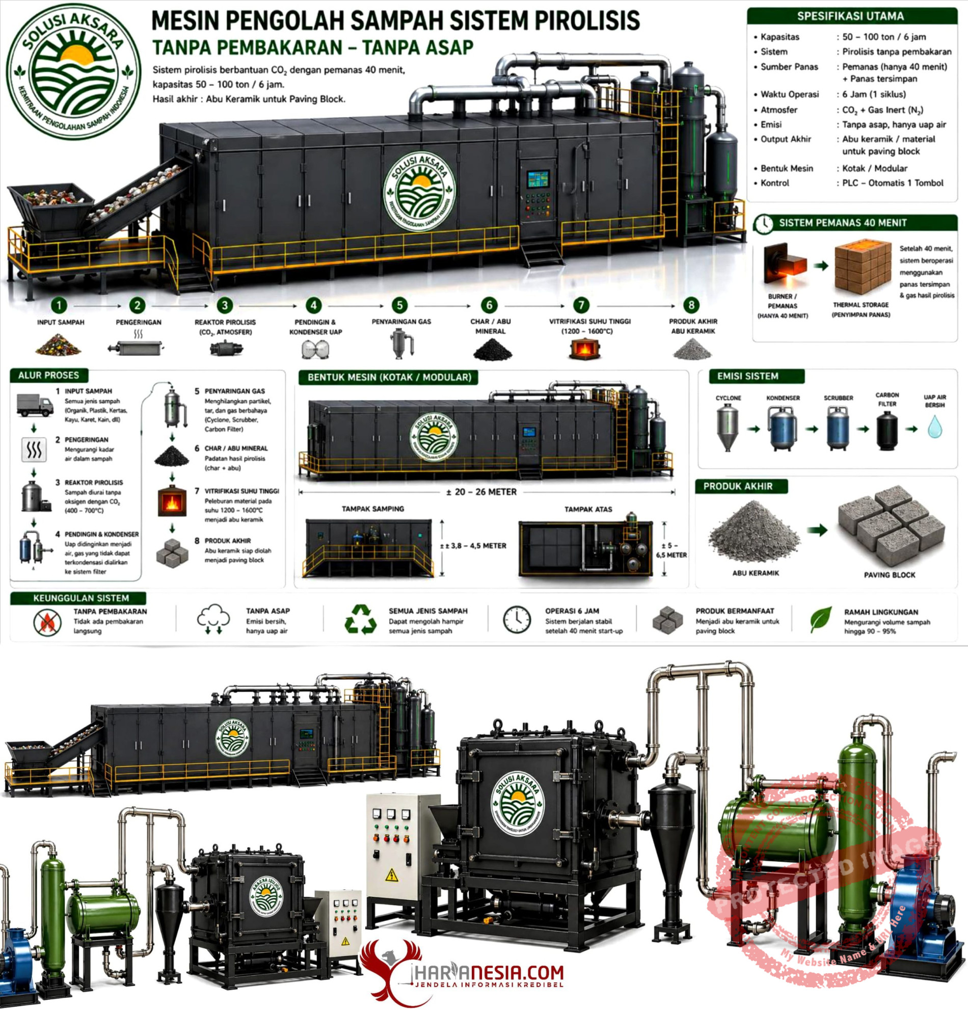 DENPASAR_HARIANESIA.COM_ 27 April 2026, PT Aksara Cristy Legal resmi meluncurkan desain mesin pengolahan sampah sistem pirolisis “Solusi Aksara” pada Sabtu (27/4/2026). Mesin karya *Made Hiroki*, Direktur PT Aksara Cristy Legal, ini diklaim mampu mengolah 50–100 ton sampah per 6 jam tanpa pembakaran terbuka dan tanpa asap.