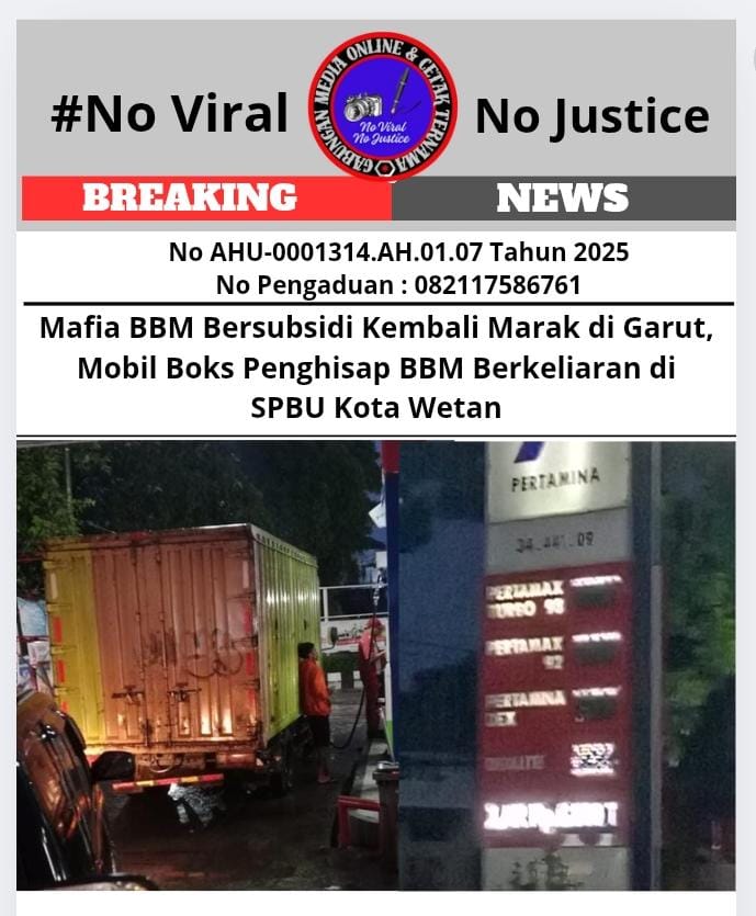 Garut, Jawa Barat (GMOCT) – Praktik mafia Bahan Bakar Minyak (BBM) bersubsidi kembali marak di Kabupaten Garut, Jawa Barat. Kali ini, sebuah mobil boks terindikasi melakukan praktik ilegal di Stasiun Pengisian Bahan Bakar Umum (SPBU) 34.441.09, tepatnya di Kota Wetan, Kecamatan Garut Kota.