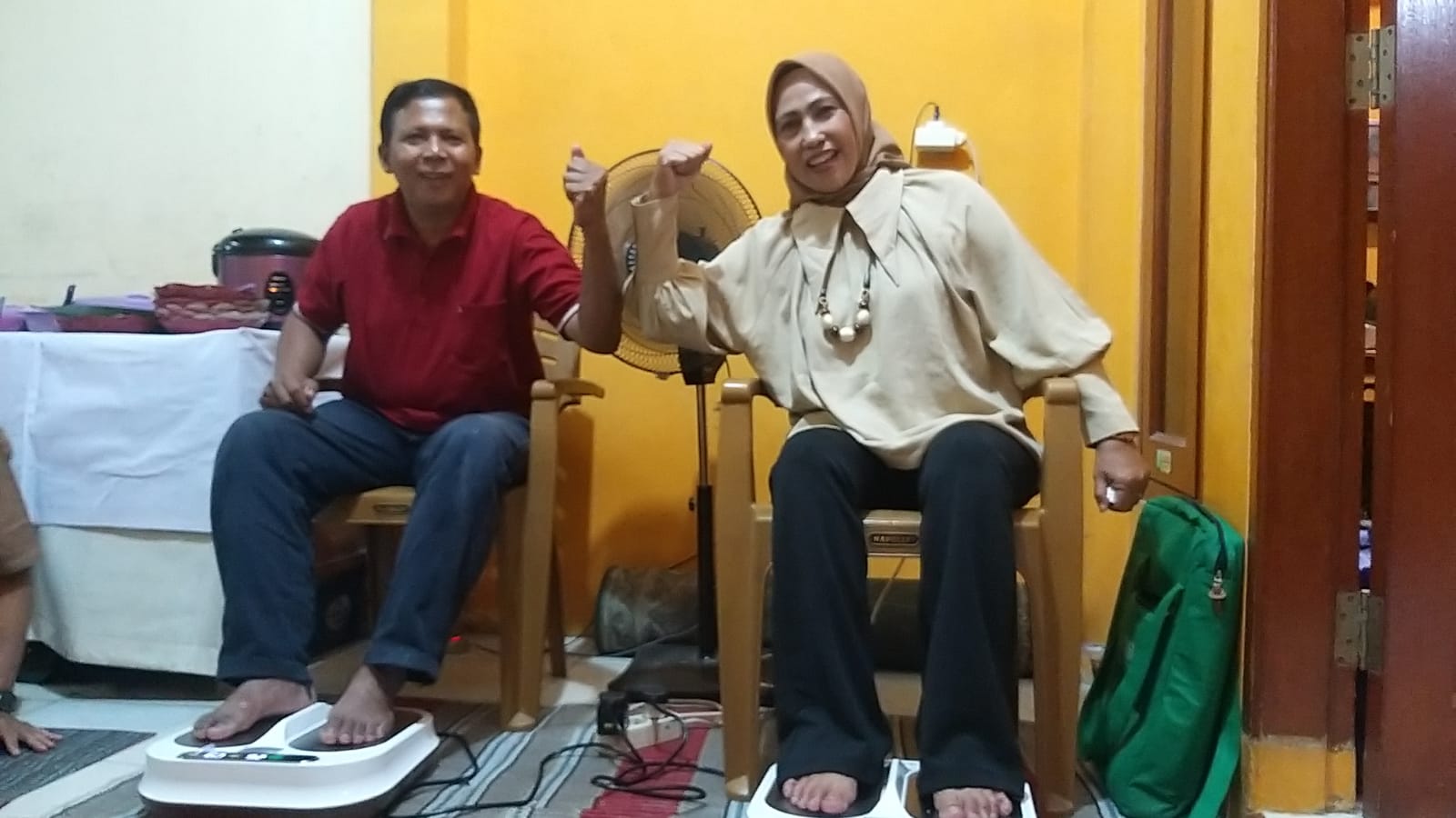 Setelah arisan, peserta satu per satu mencoba terapi kaki Tera-T90. Menurut Eko, terapi selama 30 menit dapat membantu memperlancar sirkulasi darah, meningkatkan metabolisme, mengurangi ketegangan otot, hingga membantu detoksifikasi dan mencegah penuaan dini. “Alat ini simpel, bisa dibawa ke mana saja, dan manfaatnya luar biasa,” kata Usep Kusnadi.