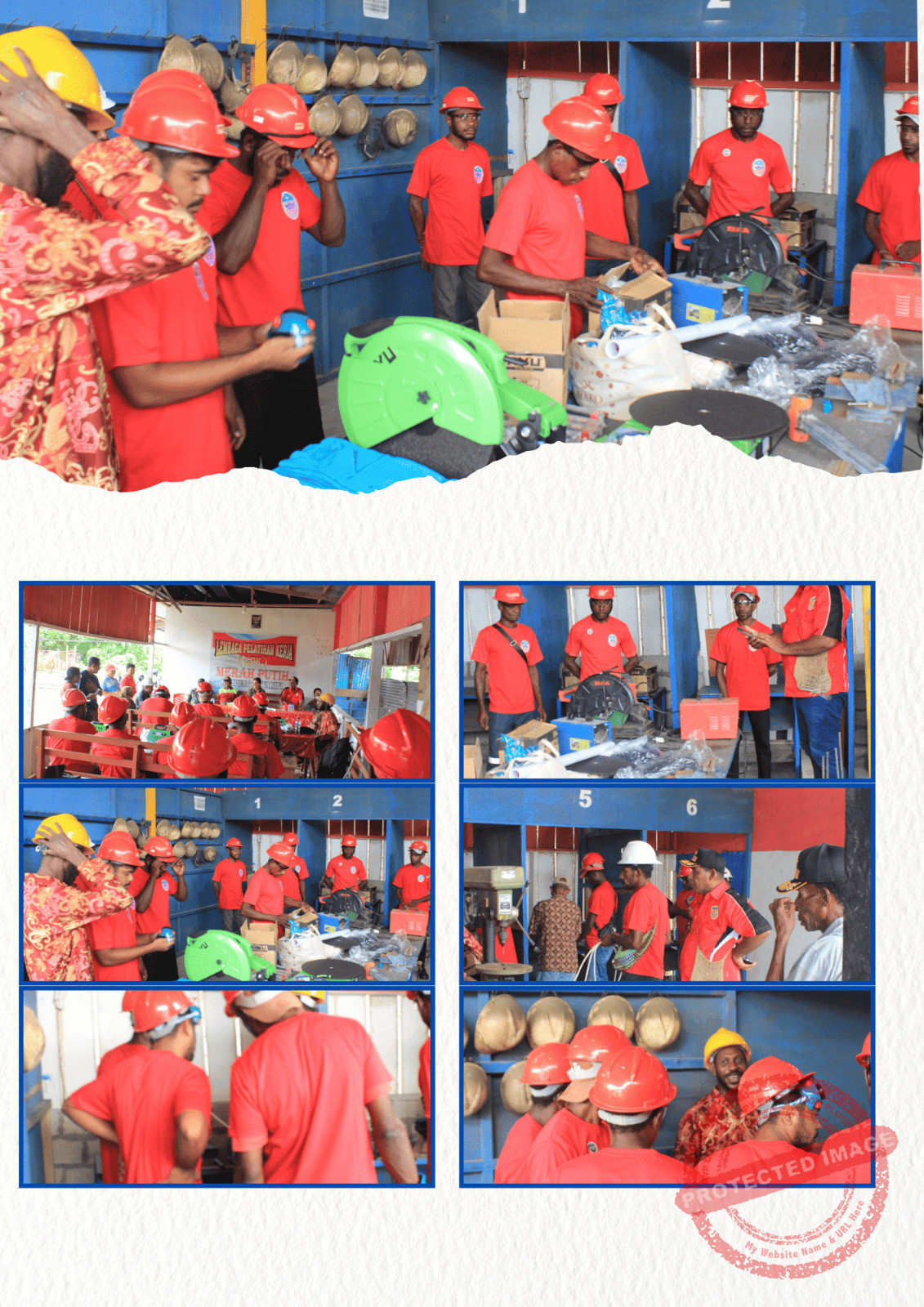 Puluhan peserta pelatihan ini dalam mengikuti pelatihan diberikan baju kaos seragam merah, helm, kaca mata, kaos tangan, sepatu dan peralatan las.