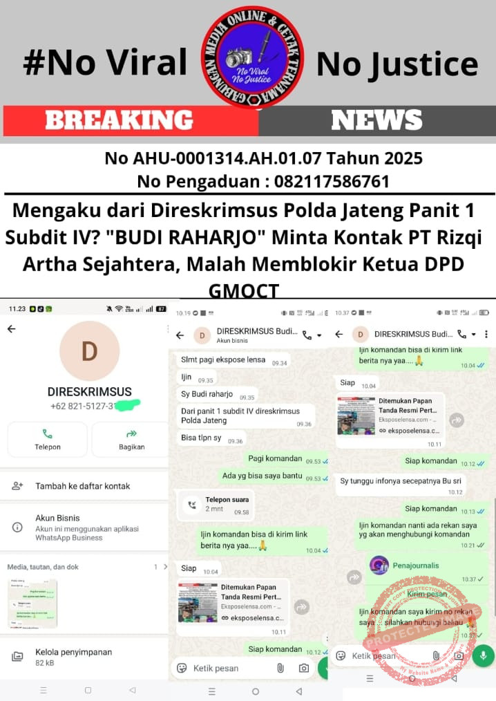 Mengaku dari Direskrimsus Polda Jateng Panit 1 Subdit IV? “BUDI RAHARJO” Minta Kontak PT Rizqi Artha Sejahtera, Malah Memblokir Ketua DPD GMOCT