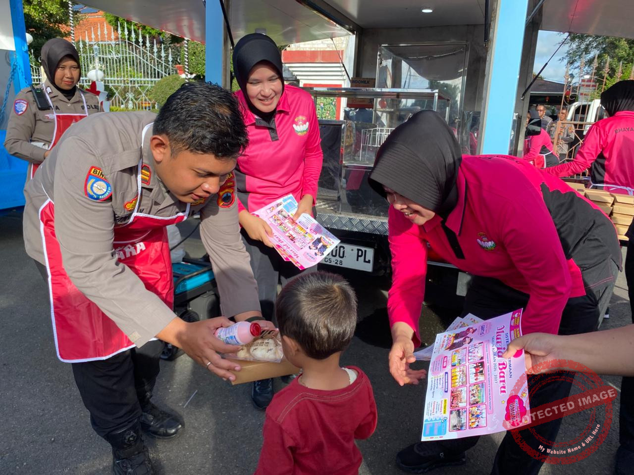 Selain meluncurkan mobil dapur umum, Kapolres Jepara beserta Ketua Bhayangkari Cabang Jepara juga membagikan brosur dan pamflet kepada warga dalam rangka sosialisasi penerimaan peserta didik baru (PPDB) TK Kemala Bhayangkari tahun ajaran 2026/2027.