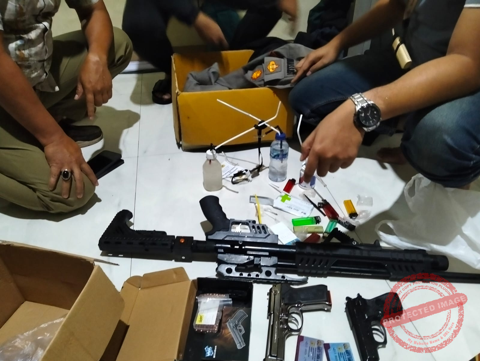 Selain atribut dan KTA palsu tersebut, petugas juga menemukan dua pucuk pistol dan satu senjata laras panjang. Tidak hanya itu, dalam penggeledahan turut didapati beberapa alat hisap narkotika jenis sabu serta plastik-plastik kecil bekas sabu.
