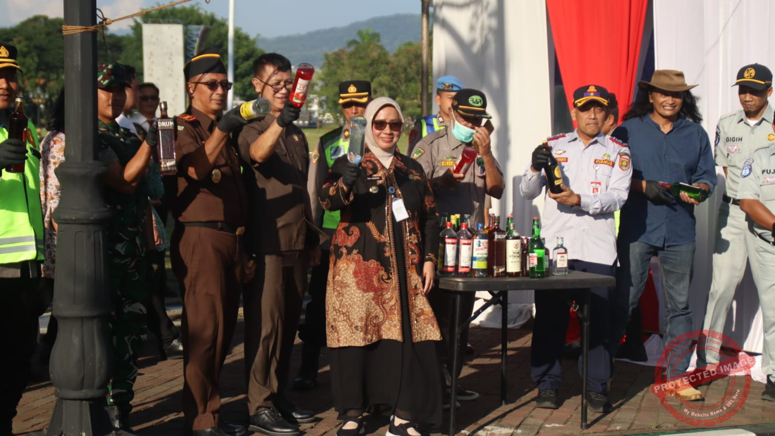 Sebagai komitmen menjaga kekhusyukan ibadah masyarakat, usai apel digelar, jajaran Forkopimda langsung melaksanakan pemusnahan barang bukti minuman keras (miras). Sebanyak 4.416 botol berbagai jenis, mulai dari ciu hingga wisky, dimusnahkan.