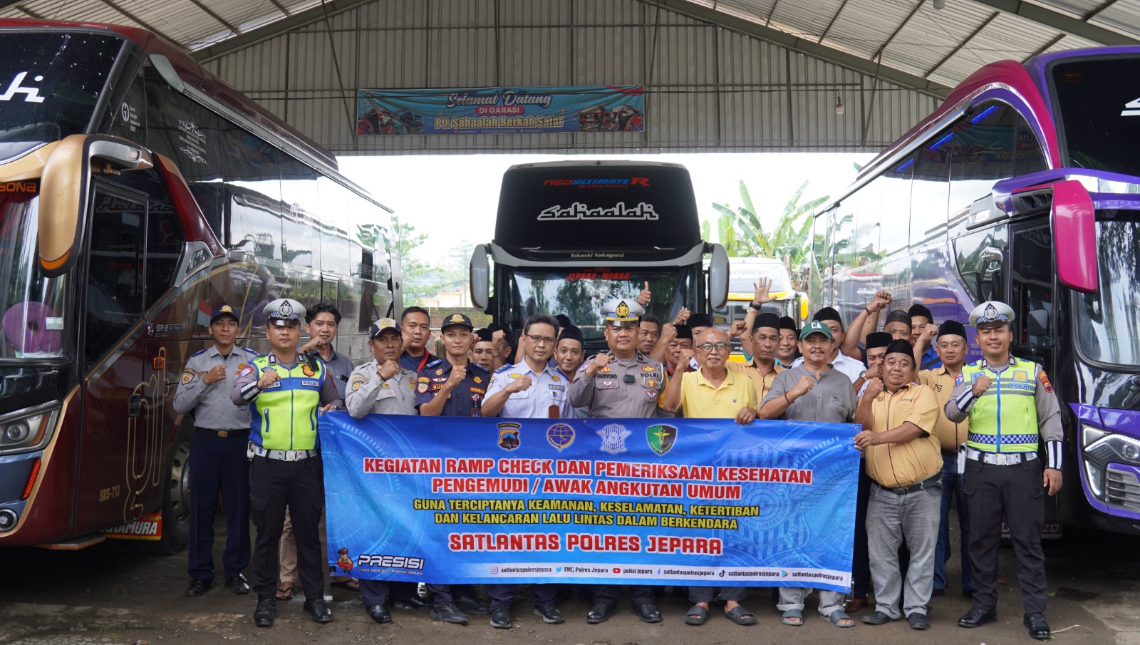 Kegiatan ramp check ini dilaksanakan bertempat di Garasi Bus Sahaalah Desa Ngabul, Kecamatan Tahunan, Kabupaten Jepara, pada Jumat (26/12/2025).